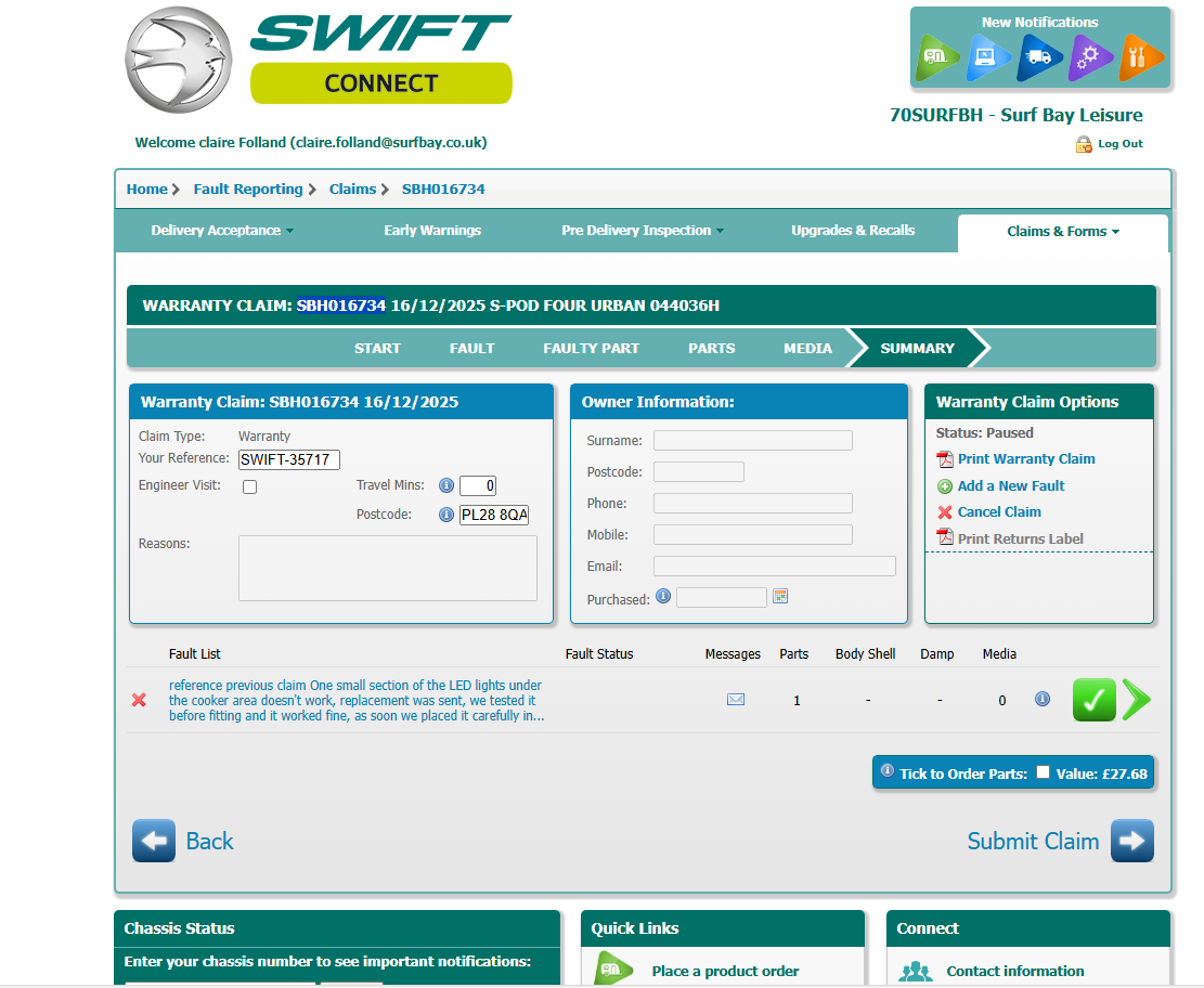 Claire Folland added a comment - re-submitted claim into swift