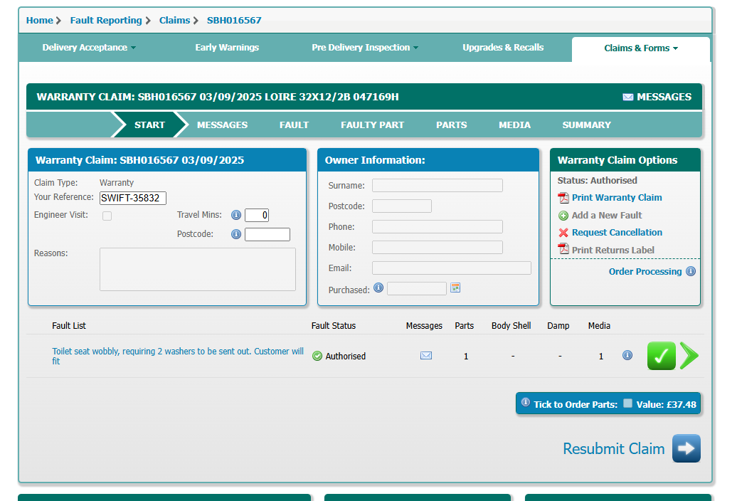 James Eginton added a comment - Converted to claim, have raised parts enquiry on it.