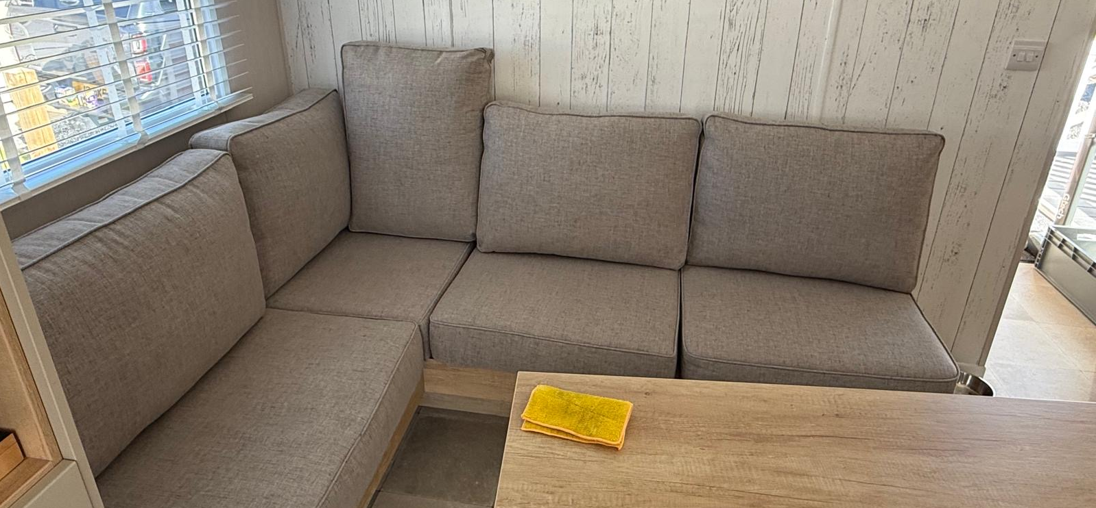 If we turn it around it fits correctly. The smaller cushion is supplied in the picture on your brochure.