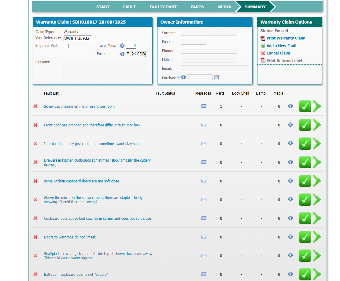 | Summary | CLONE - Front door has dropped and therefore difficult to shut or lock | Internal doors only just catch and sometimes wont stay shut |