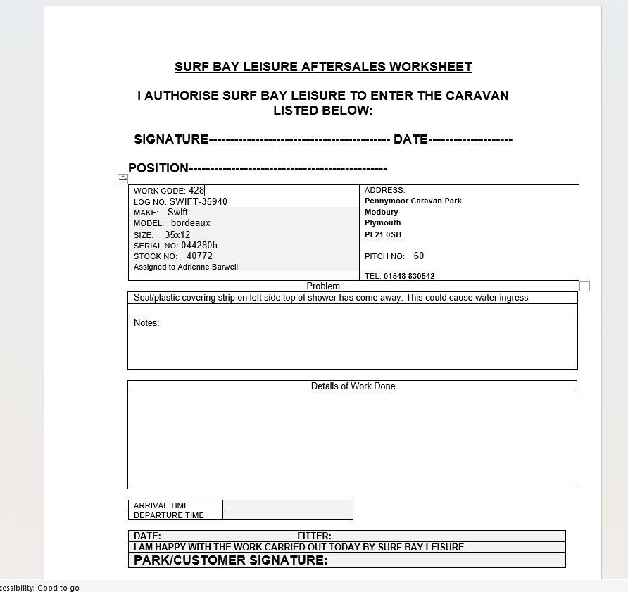 | Summary | CLONE - Doors to wardrobe do not “meet | Seal/plastic covering strip on left side top of shower has come away. This could cause water ingress |
