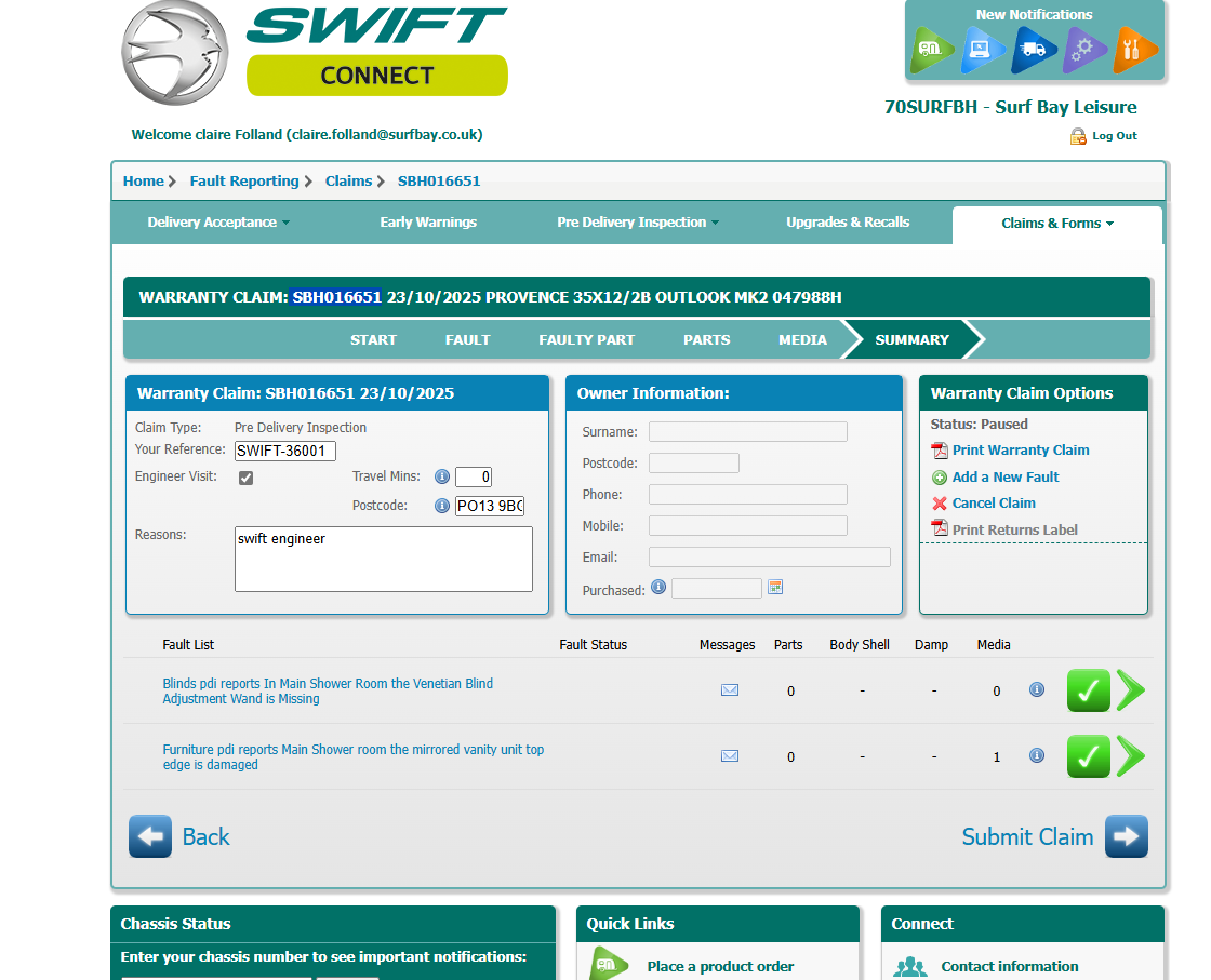 | Summary | CLONE - pdi reports In Main Shower Room the Venetian Blind Adjustment Wand is Missing | pdi reports Main Shower room the mirrored vanity unit top edge is damaged |