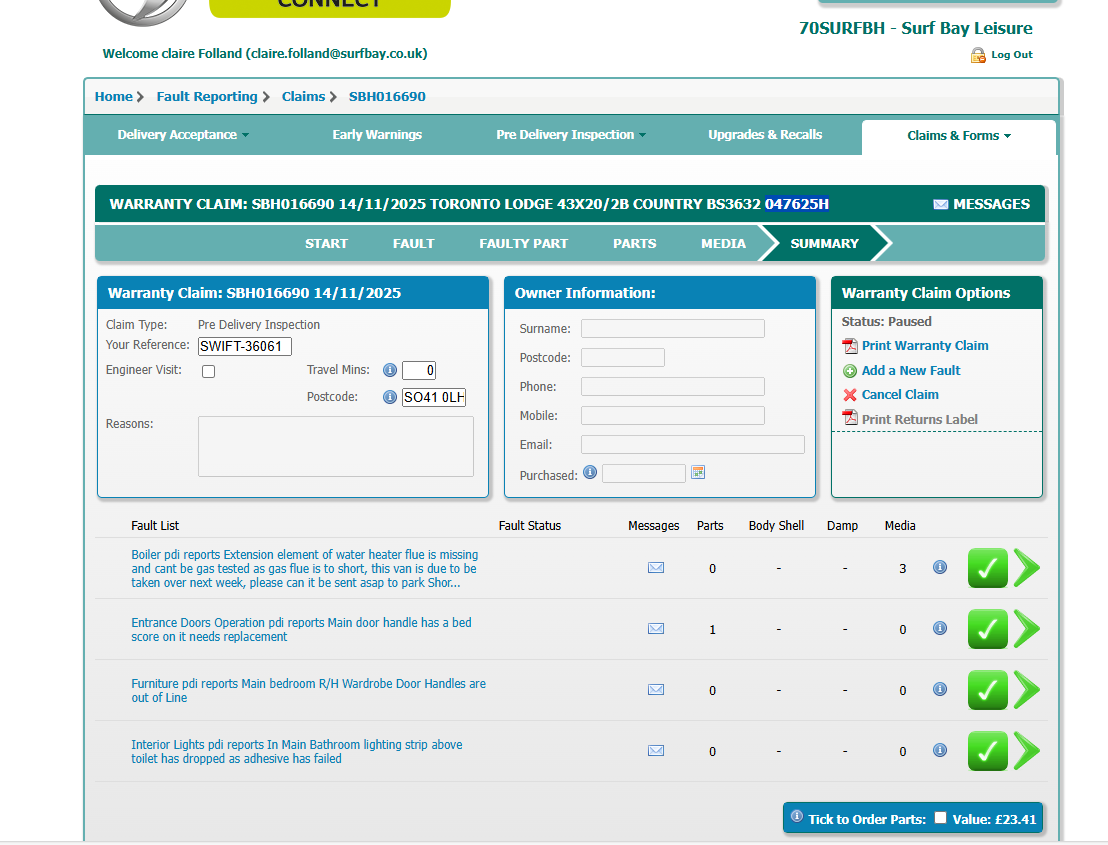 | Status | Parts Recieved [ 10003 ] | Worksheet Issued [ 10004 ] |