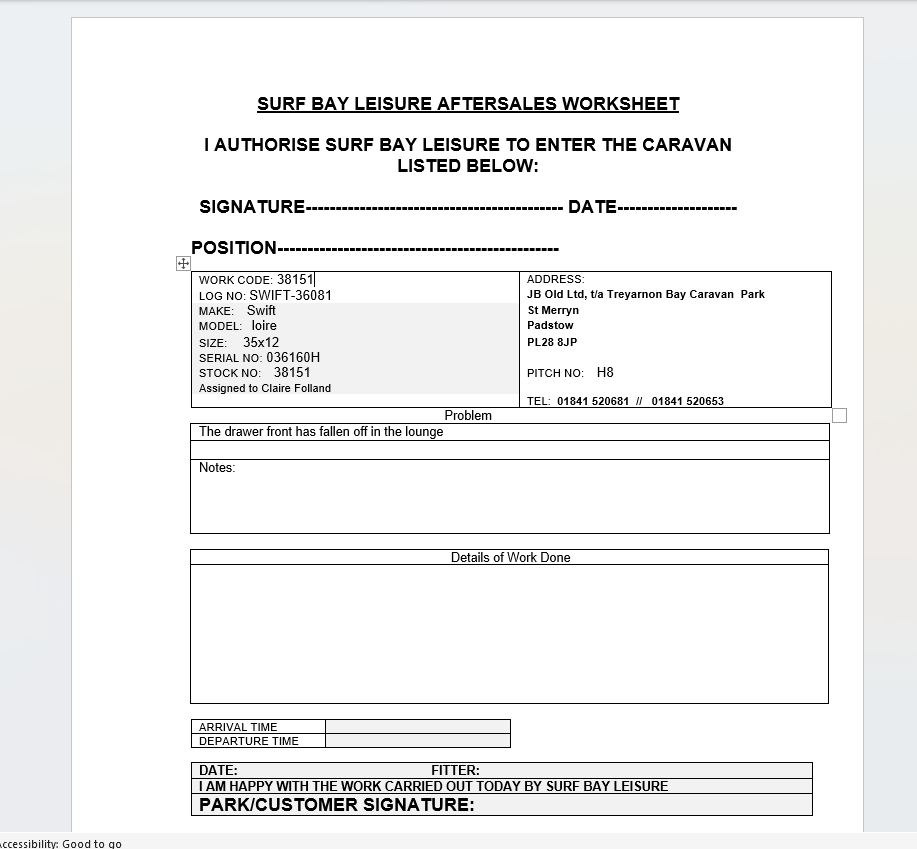 | Summary | CLONE - main double glazed door has a gap at the bottom you can see light and feel the breeze coming through. | The drawer front has fallen off in the lounge |