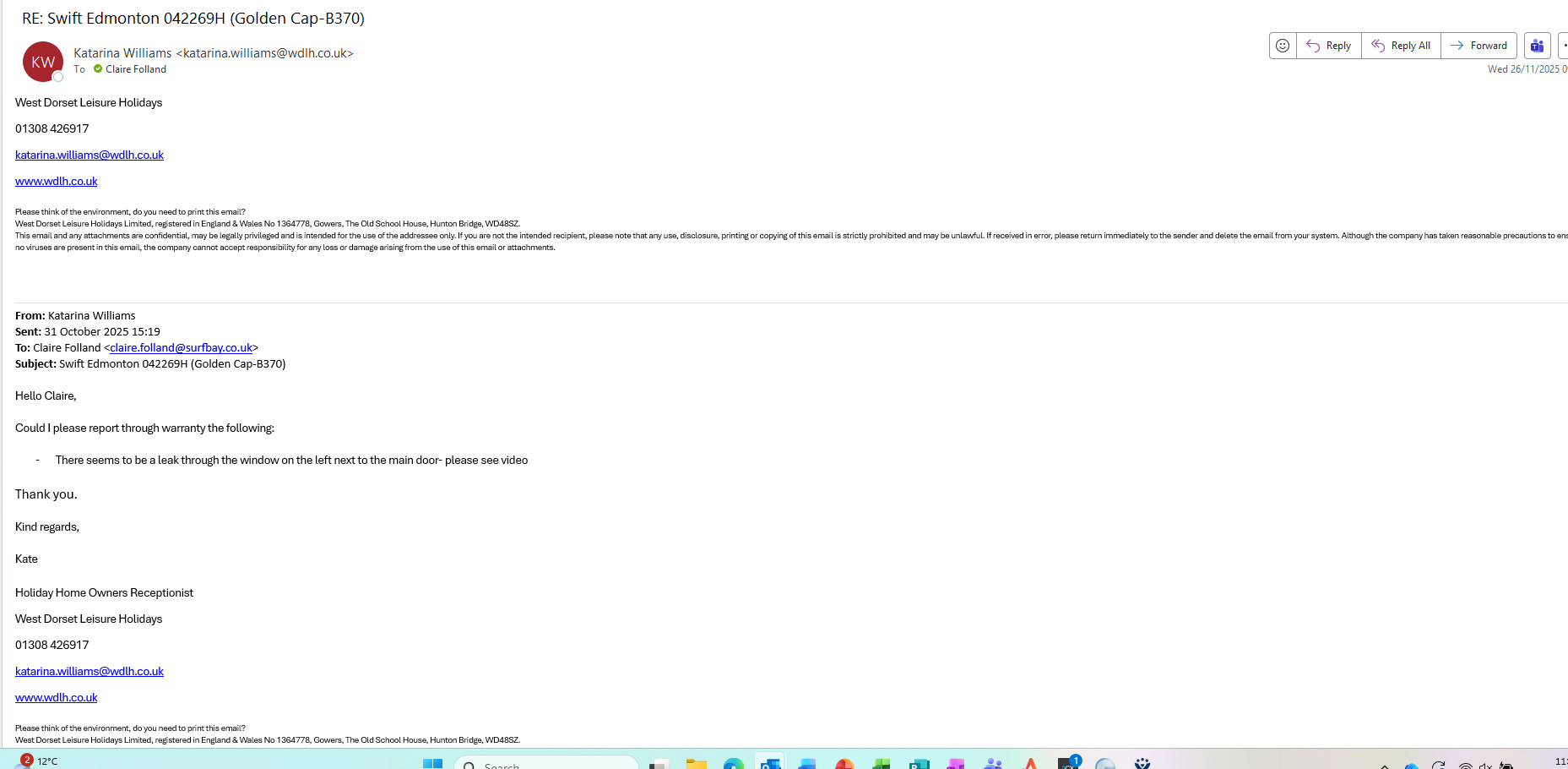 Claire Folland added a comment - complete by Duncan 8-12-25, fixed guttering, resealed vent over window
