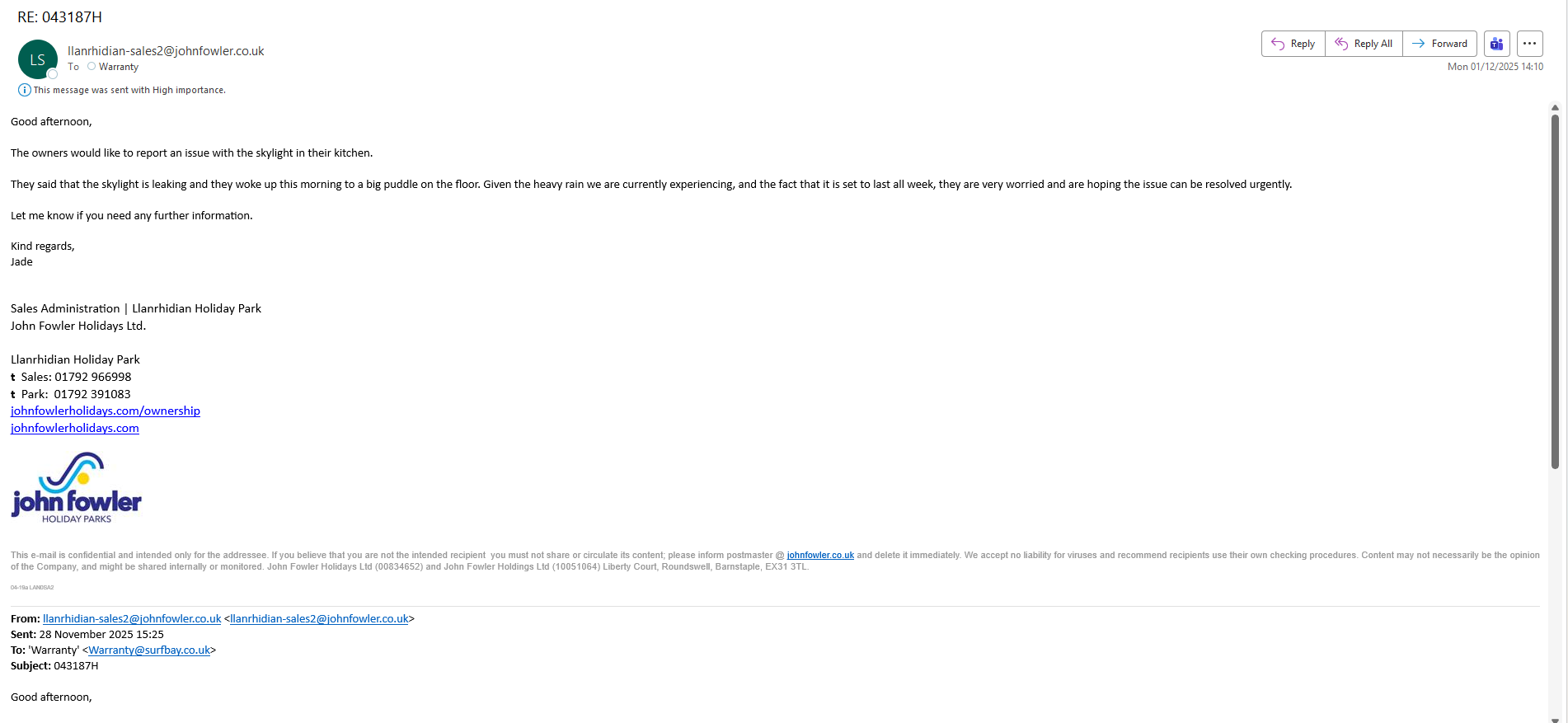 | Park_Email | Linda MacNamara | Llanrhidian Holiday Park <llanrhidian-sales2@johnfowler.co.uk> | |