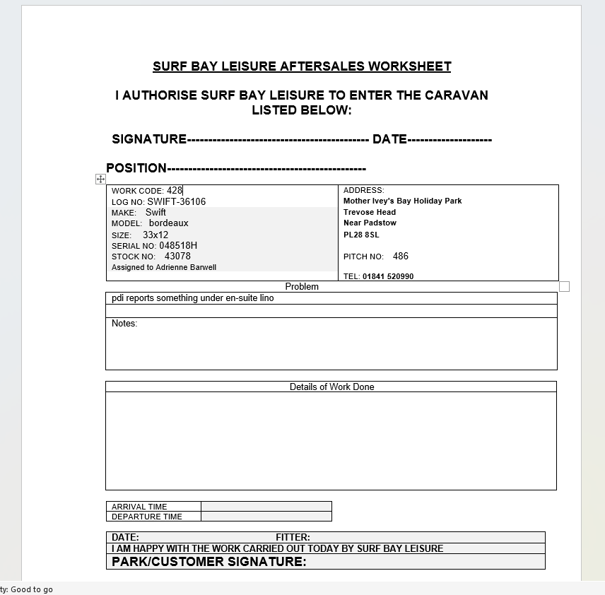 | Summary | CLONE - pdi reports main bedroom bottom drawer sticking | pdi reports something under en-suite lino |
