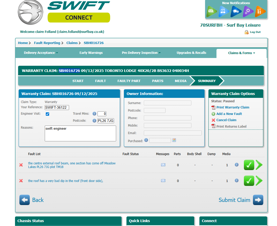 | Summary | CLONE - the centre external roof beam, one section has come off | the roof has a very bad dip in the roof (front door side), |