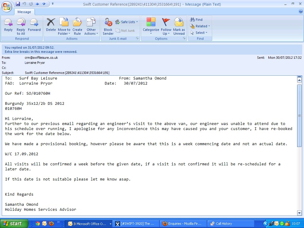 added a comment - - edited Swift have requested photographs - left a message for Steve on his mobile asking him to send through photographs