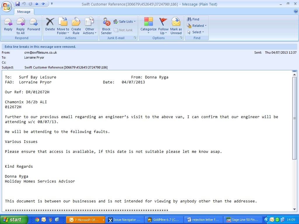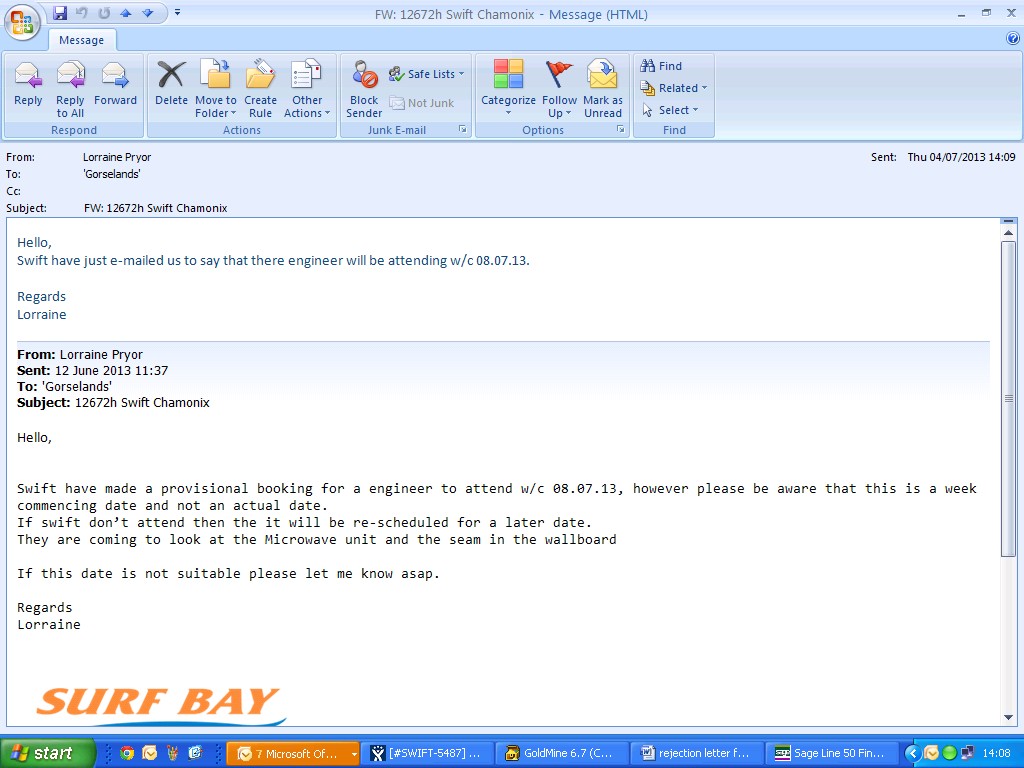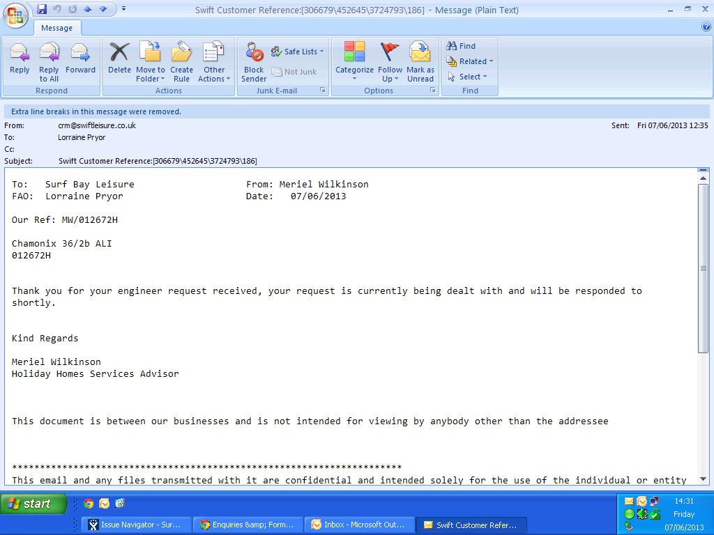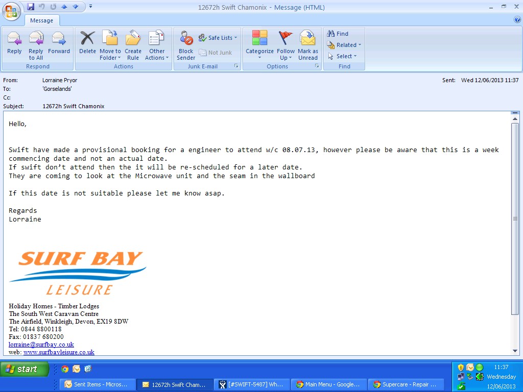 swift have sent an e-mail saying they are dealing with our request for an engineer.