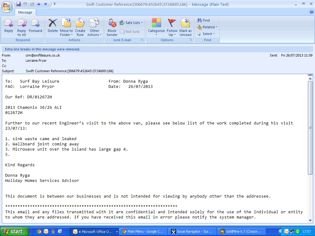 Lorraine Pryor (Inactive) added a comment - swift have e-mailed to say this is now completed.