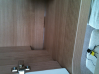Microwave unit over Island has large gap appears that inner divider too big and has pushed apart.