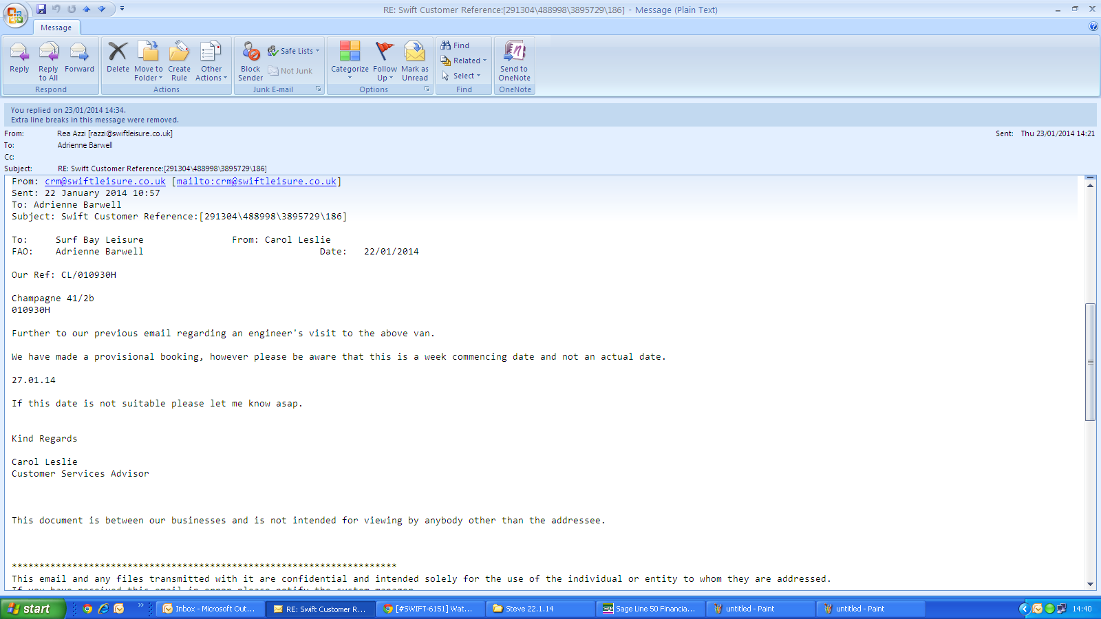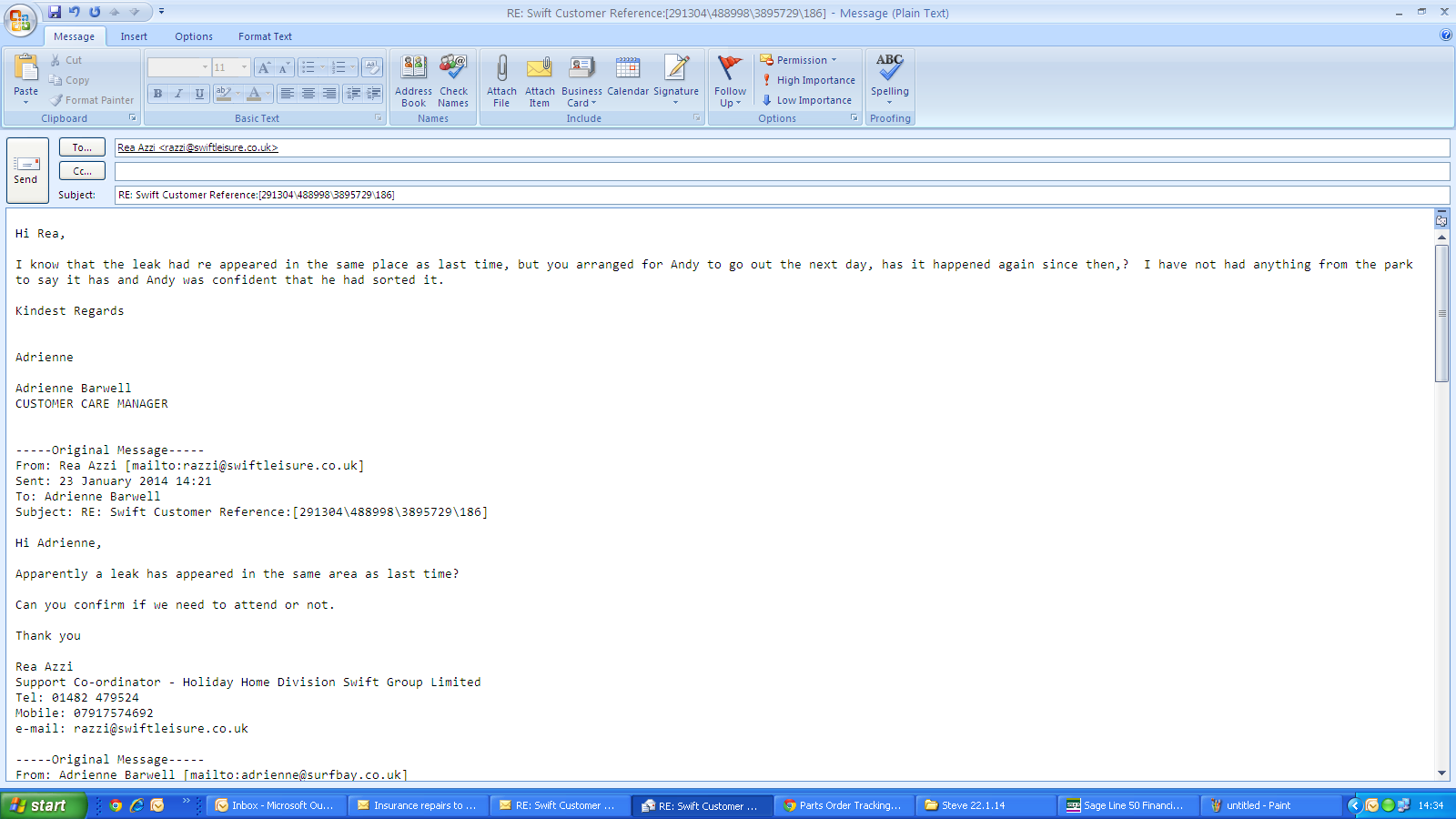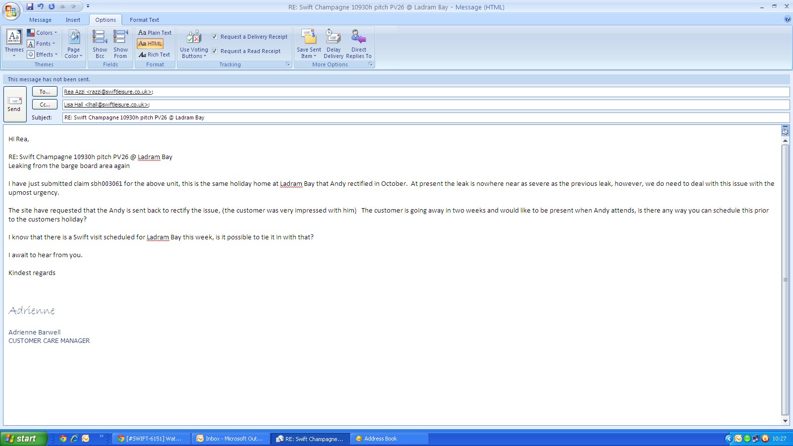 The site have advised that swift are replacing the front windows, however, the triangle top window section on the front has moved and gaps have appeared, that the wind and water is now coming through