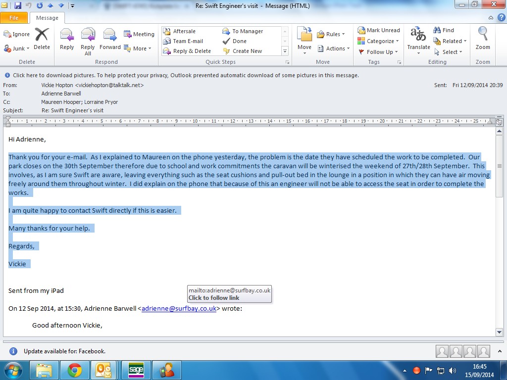 | Attachment | 15.09.14 email from owner vickie.jpg [ 72328 ] |