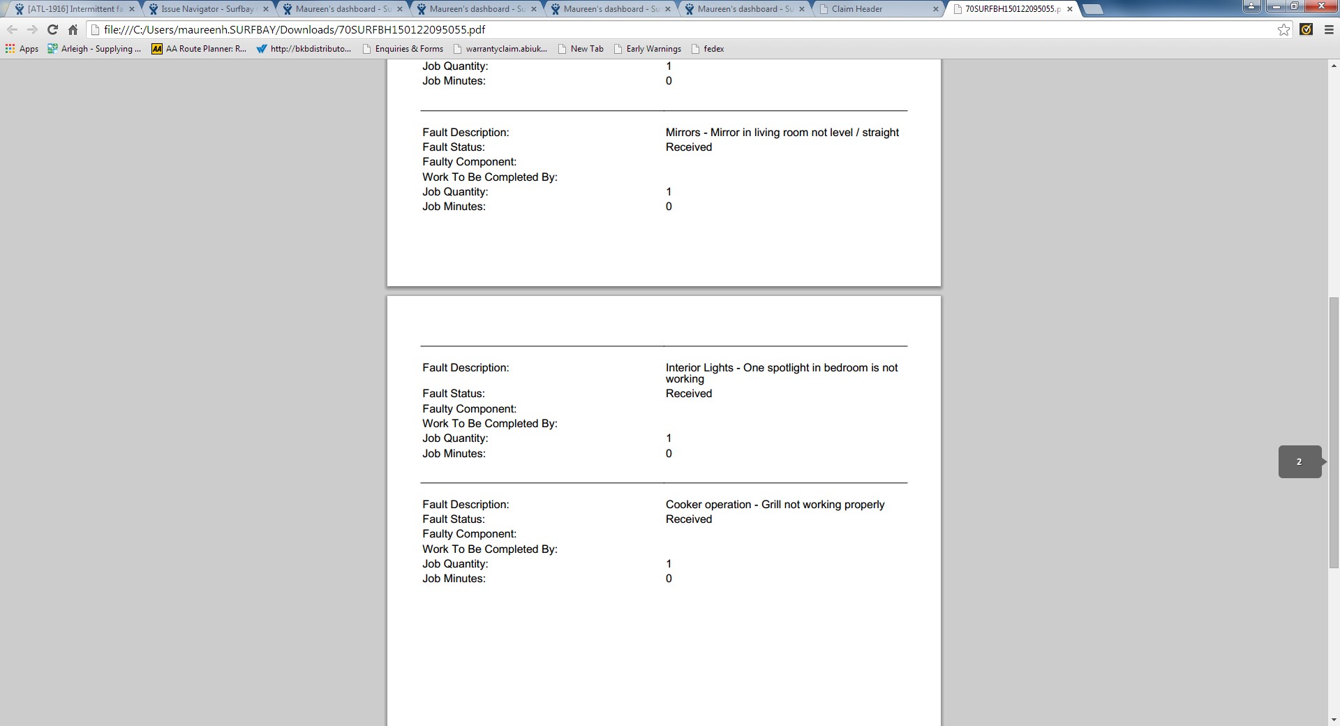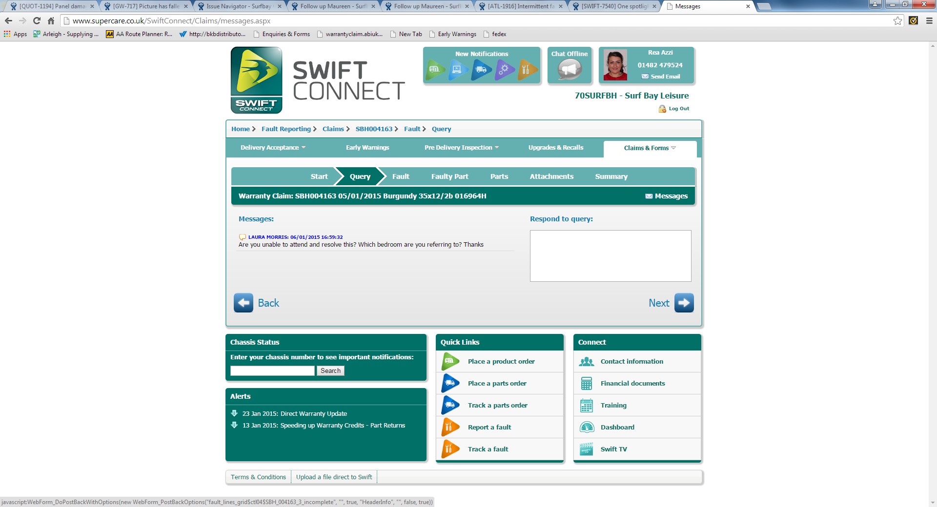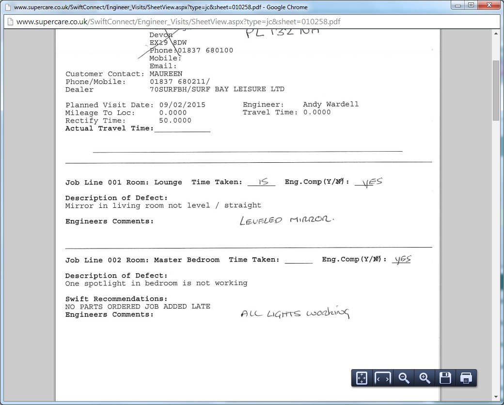 Lorraine Pryor (Inactive) added a comment - Andy the swift engineer has called as he is at this van and he will look at the two issue I have also ask him to look at the issue on re the out pipes