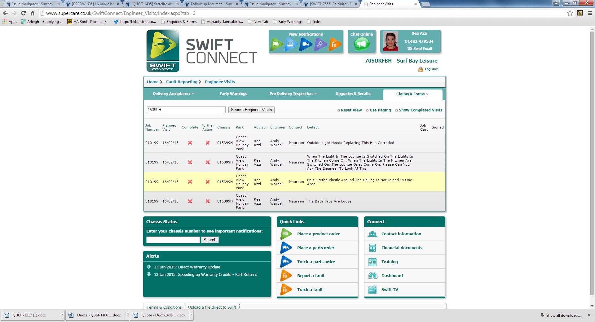 I have emailed her back to say that I will report issue into Swift, but I need more information/ photos of some of the issue along.