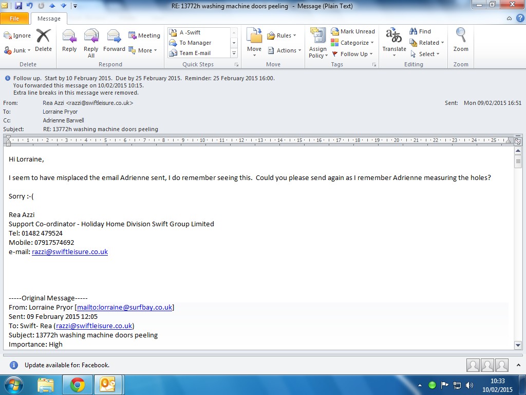 | Attachment | 10.02.15 email from Rea re washing machine make - model.jpg [ 83463 ] |