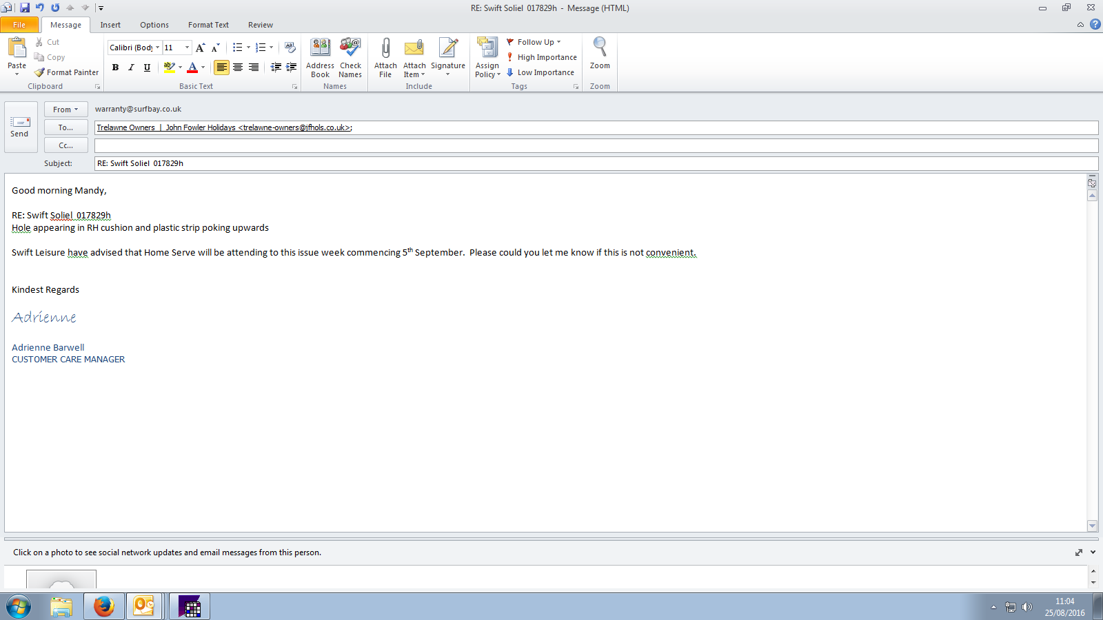 Claire Folland added a comment - complete by Homeserve 5-9-16