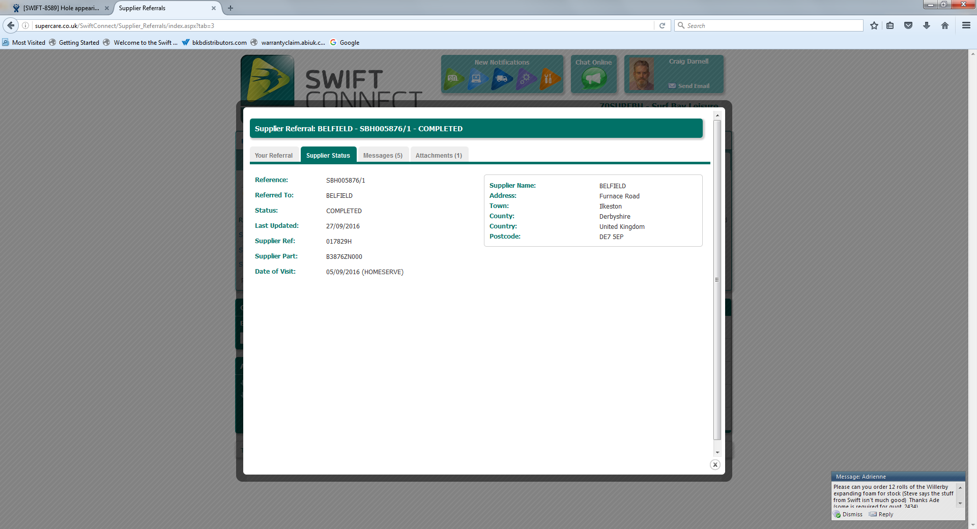 Debbie Bartlett (Inactive) added a comment - I have called swift for an update Sharon is going to get back to me.