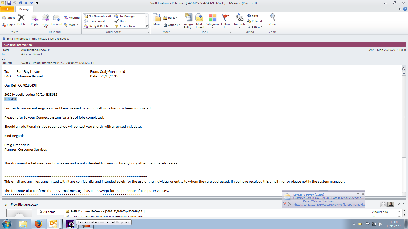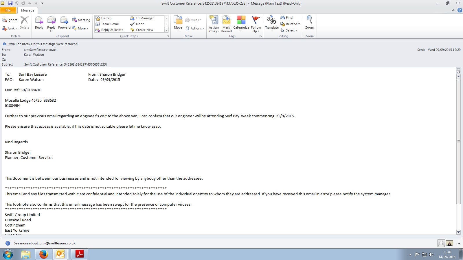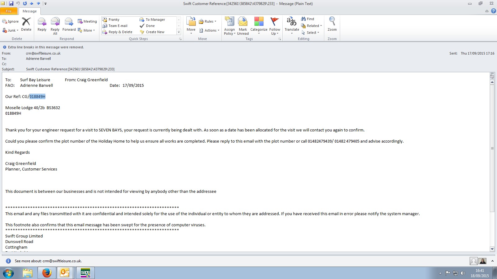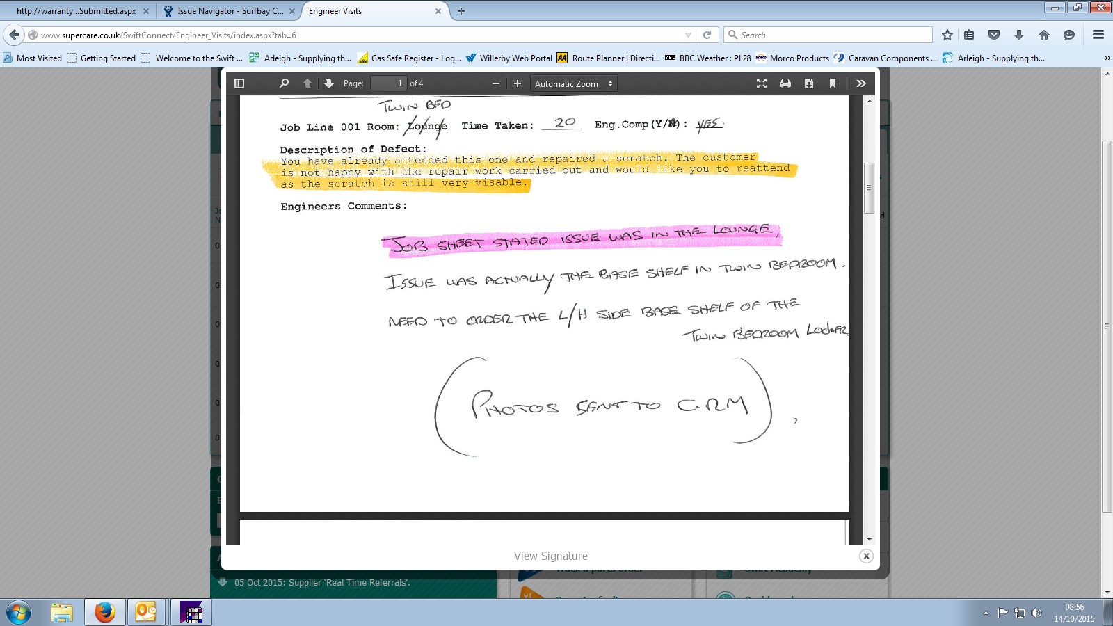 Debbie Bartlett (Inactive) added a comment - Swift re attending site W/C 21-03-16. Screen shot attached.