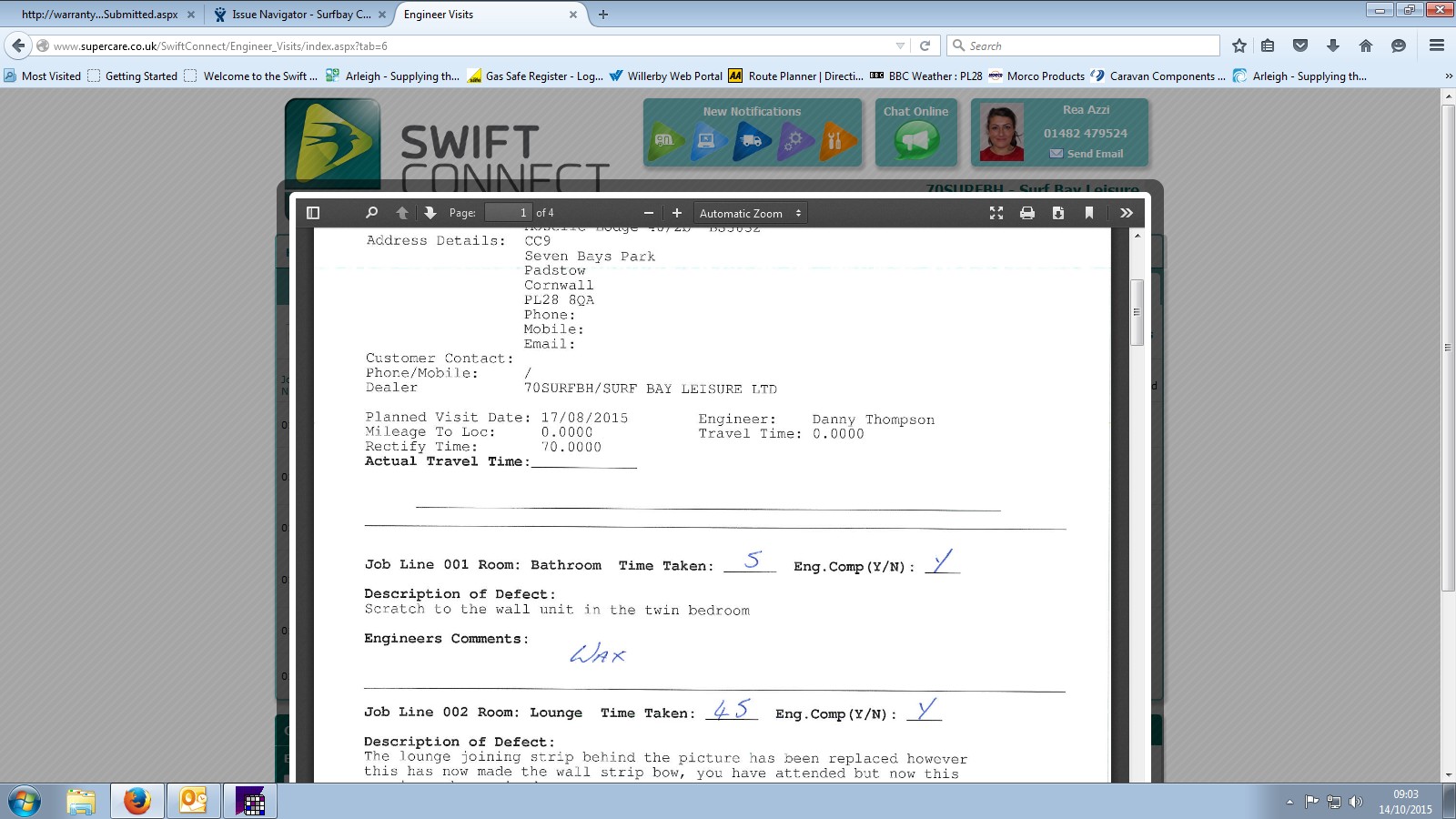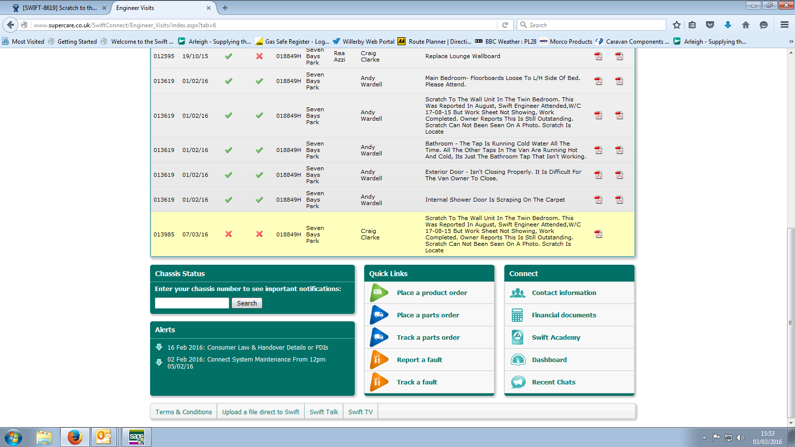 Swift re attending site W/C 21-03-16. Screen shot attached.