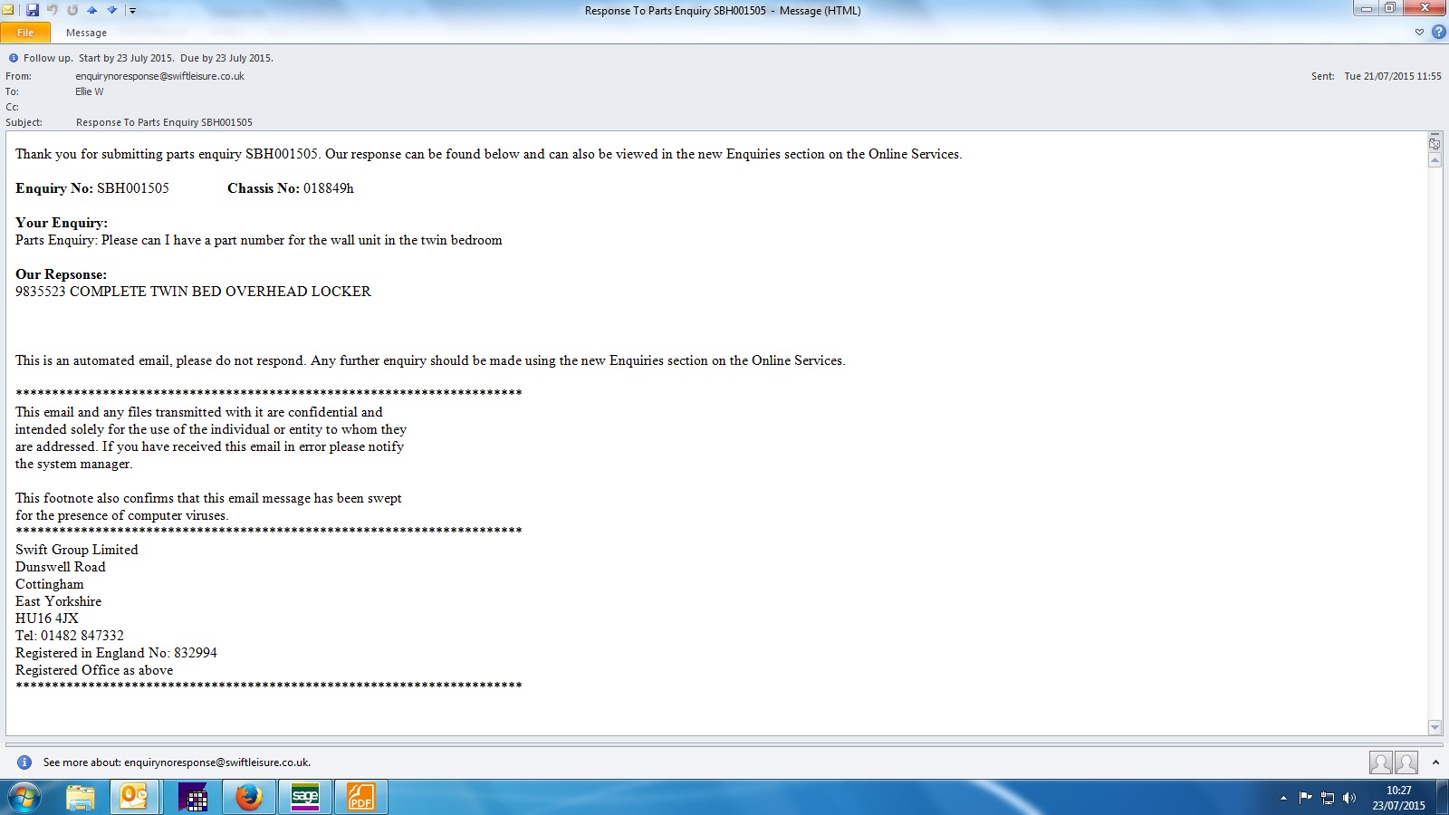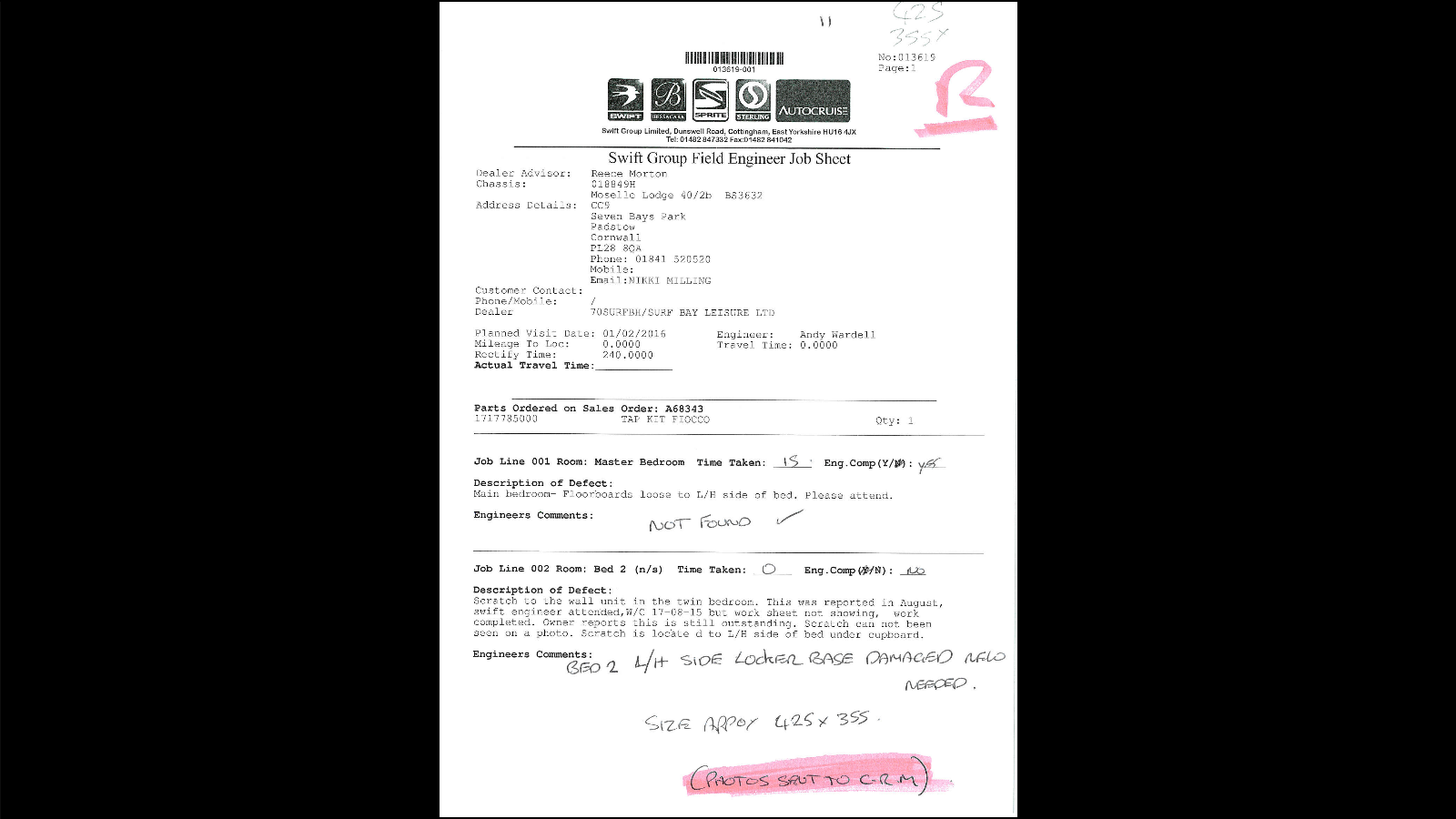 Andy from Swift has been out to this and has confirmed that they need a new side for the unit 425x325