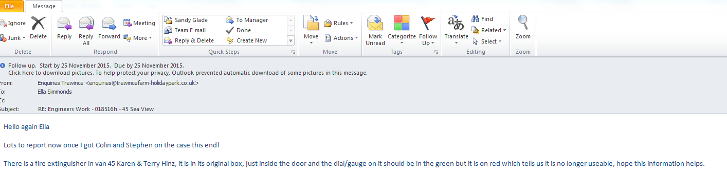 Ella Simmonds (Inactive) added a comment - going to ask Claire if we have an extinguisher here at Winkleigh that we can deliver to them