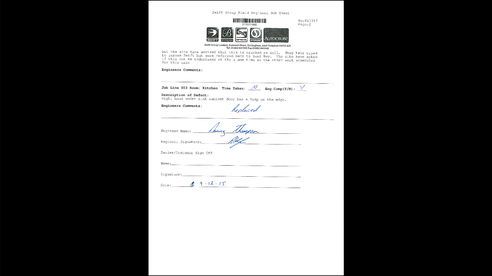 | Additional Contact Details | Stuart Grainger | sold on 15-8-15 to Mr & Mrs Dale and it is located at Plot 61 |