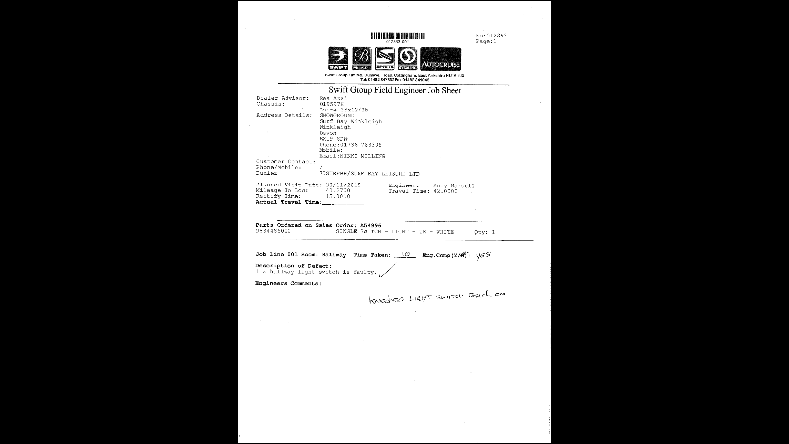 | Summary | PDI reported 1 hallways swift is faulty. | PDI reported 1 hallway switch is faulty. |