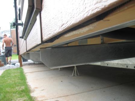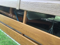 some of the wooden battening underneath the van next to the chassis is either missing or damaged