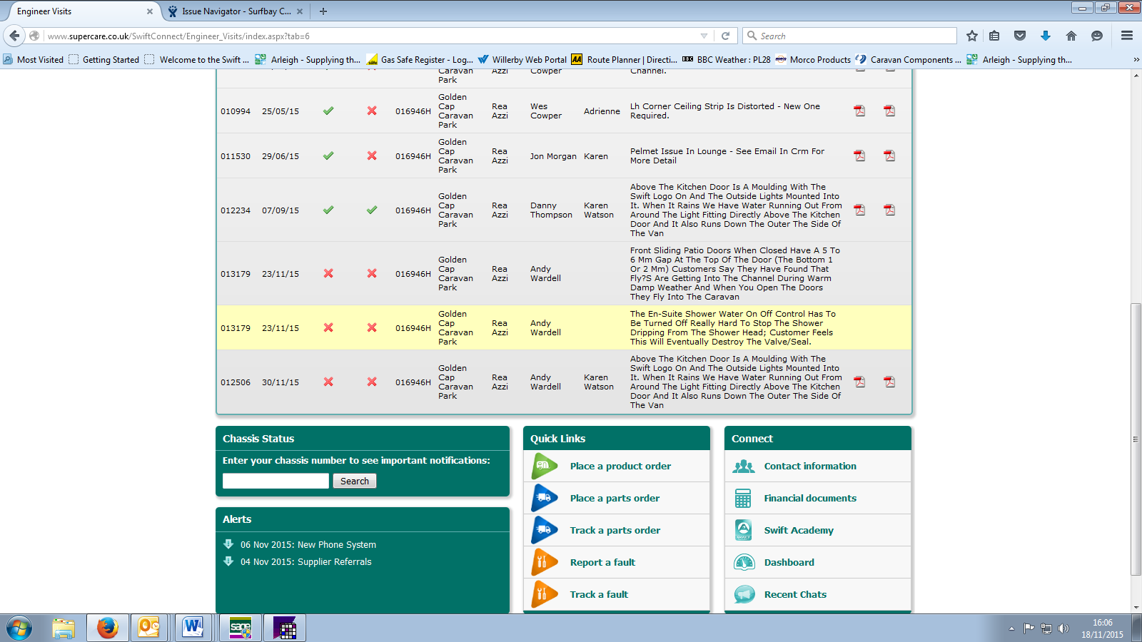 | Status | Engineer Scheduled [ 10000 ] | Parts on reorder [ 10009 ] |