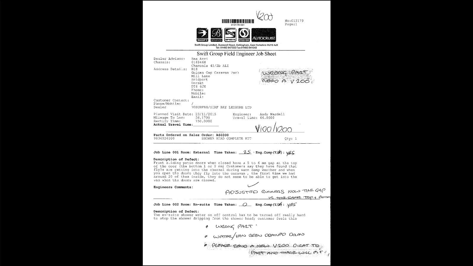 | Summary | 2. The en-suit shower water on off control has to be turned off really hard to stop the shower dripping from the shower head; customer feels this will eventually destroy the valve/seal. | The en-suite shower water on off control has to be turned off really hard to stop the shower dripping from the shower head; customer feels this will eventually destroy the valve/seal. |