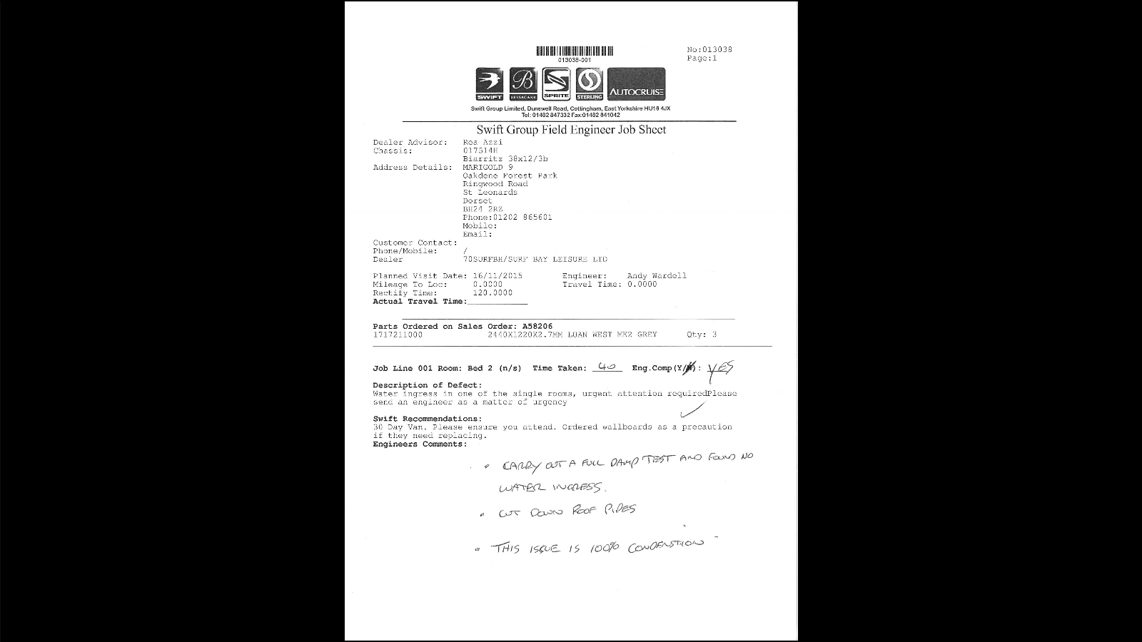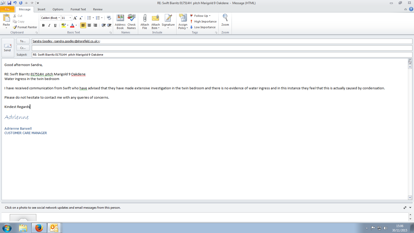 | Additional Contact Details | sold to Mr & Mrs Jones on 12.9.15 post code TN39 5EE |