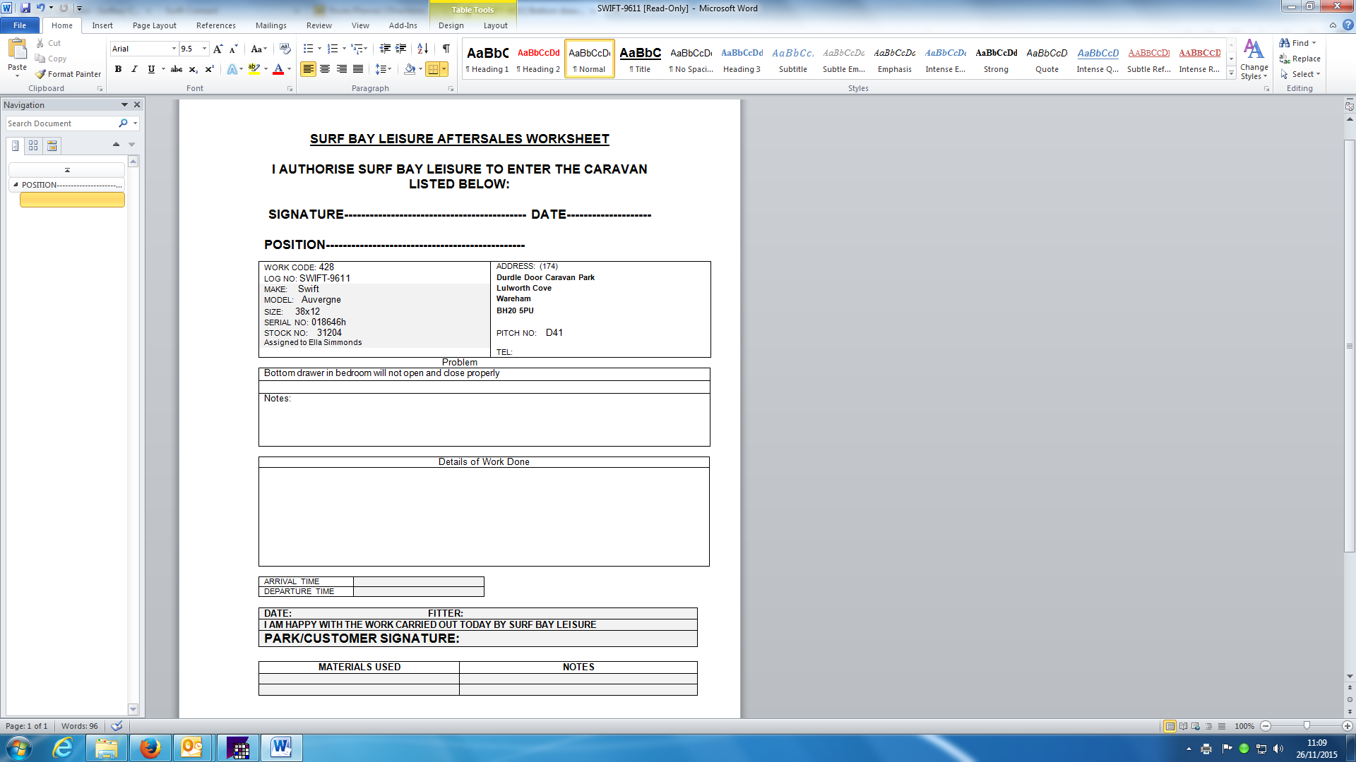 added a comment - Email received frm Carol at park simply saying bottom bedroom drawer needs replacing. Called Carol and she advised me that fault has been present since van delivered but not dealt with. She believes the problem is with the runner as it will not open or close properly. Submitted to Swift accordingly.