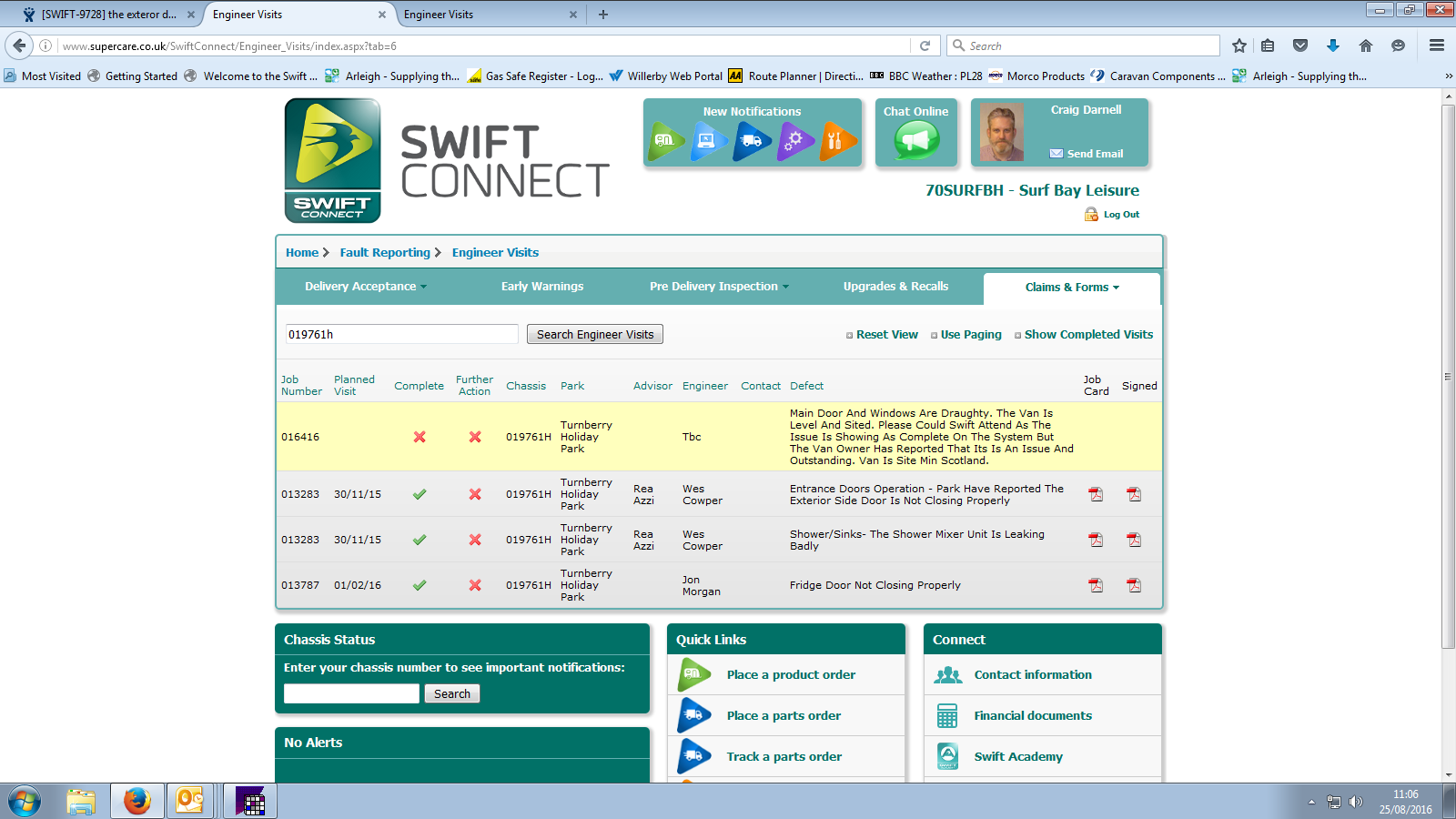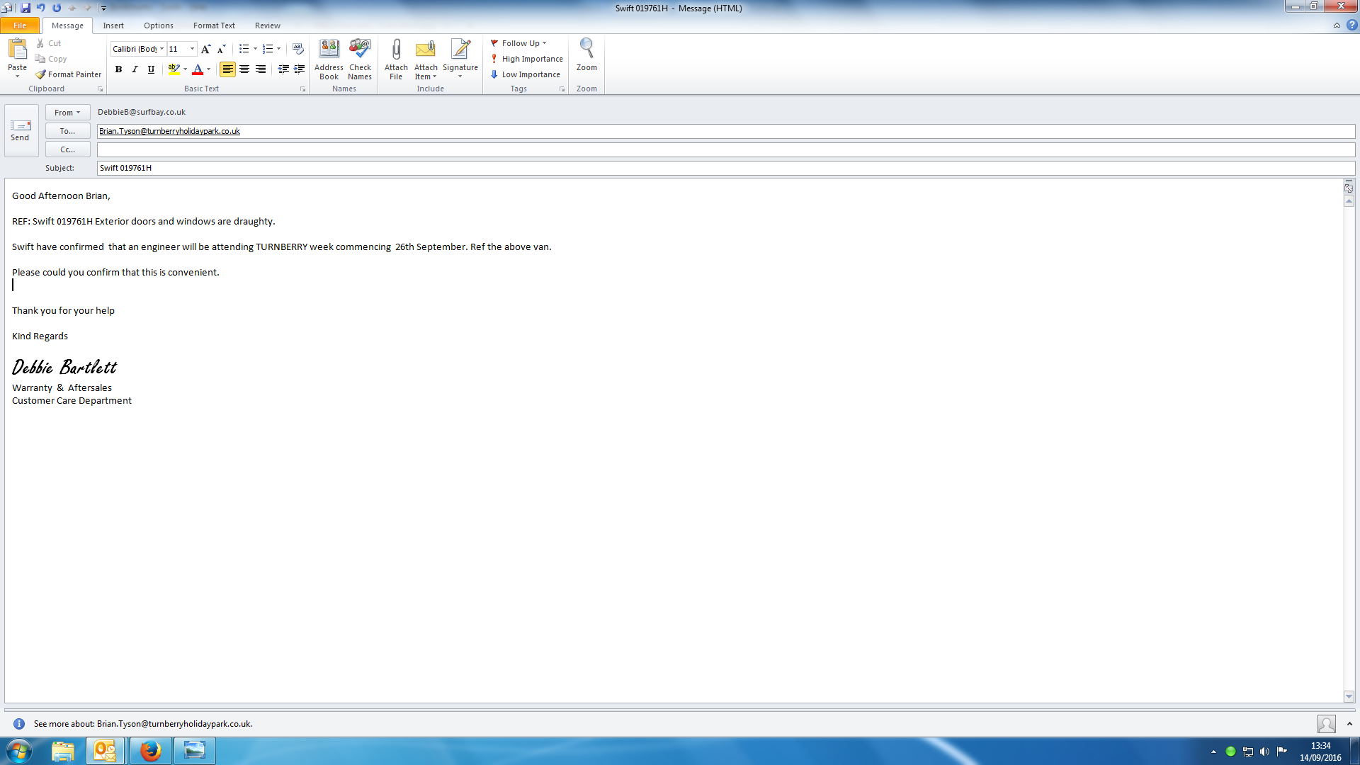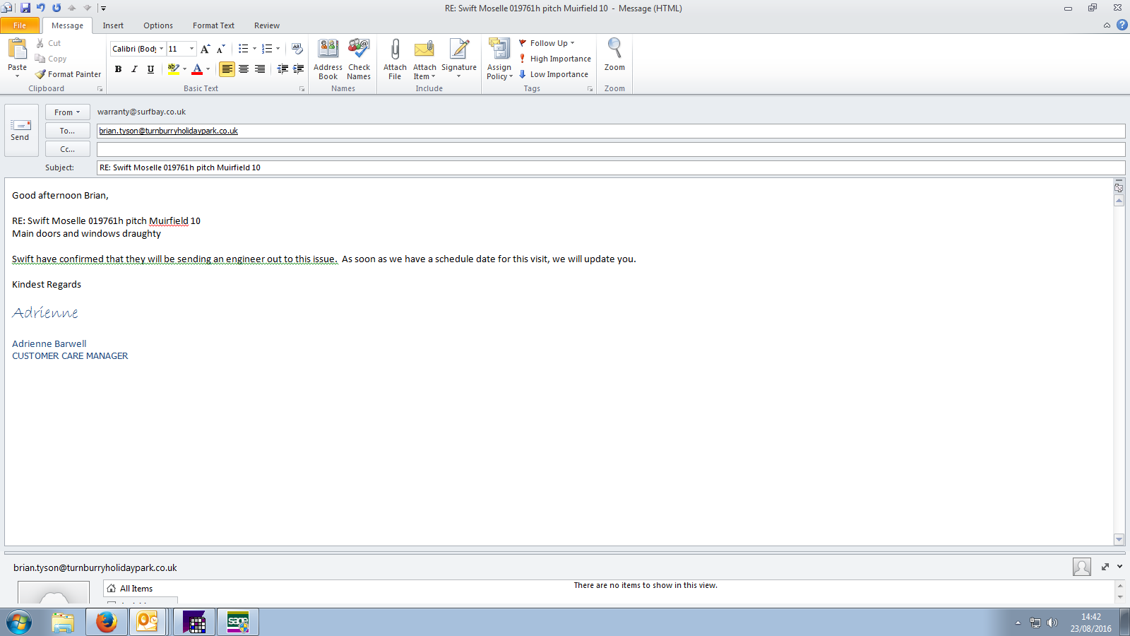 Debbie Bartlett (Inactive) added a comment - Swift have advised that they will be attending site W/C 26/09/16. Screen shot attached.