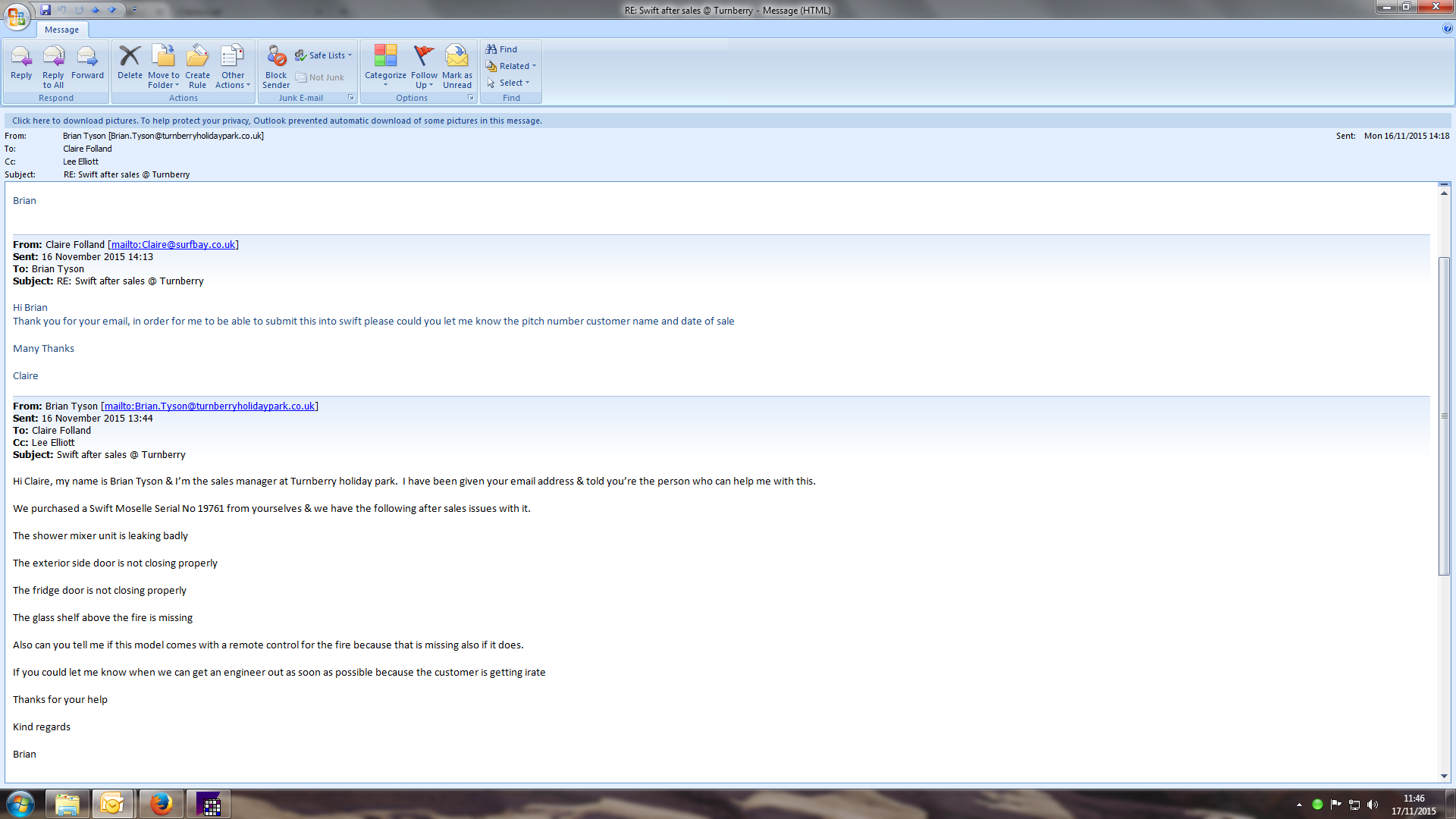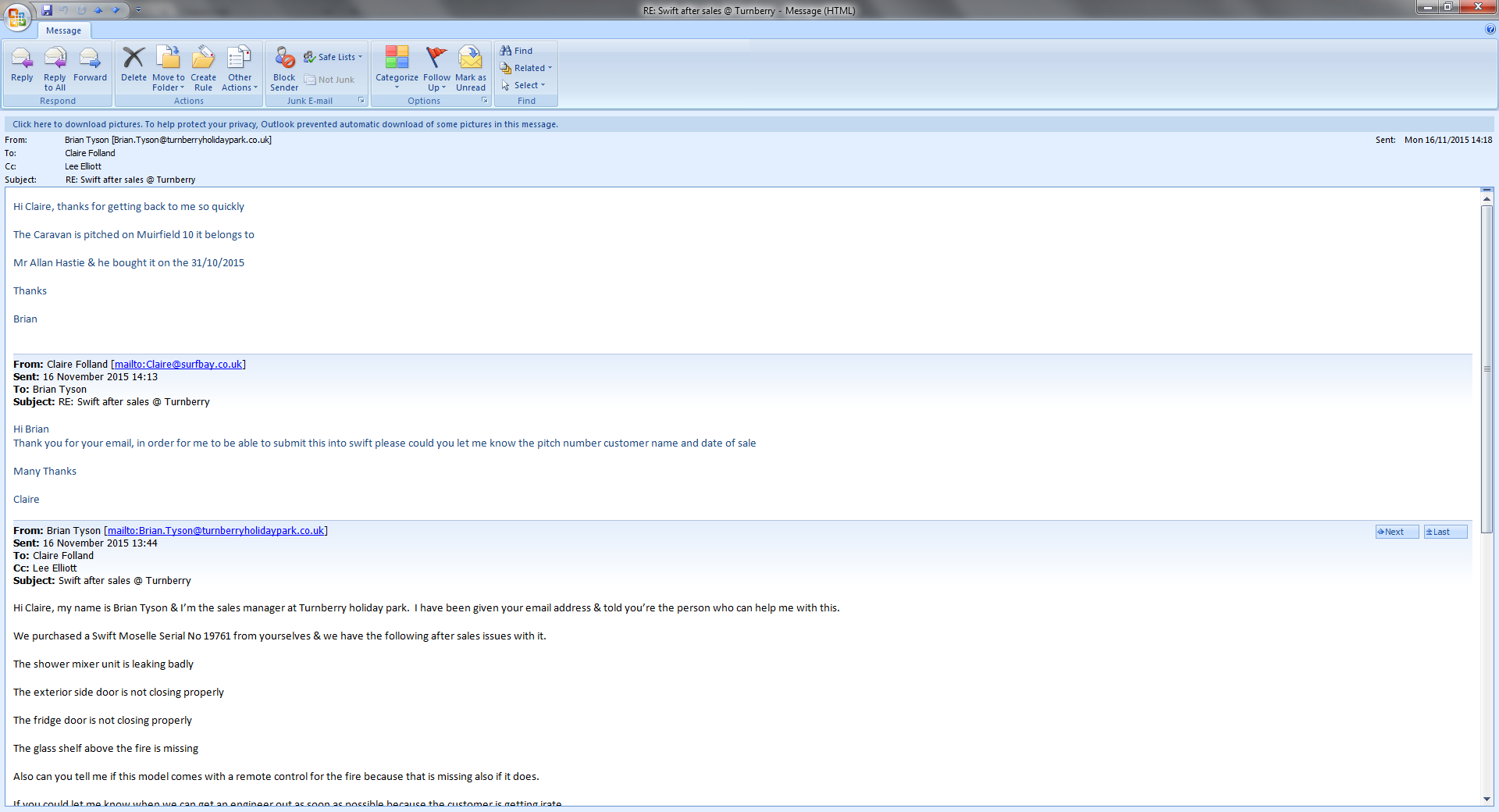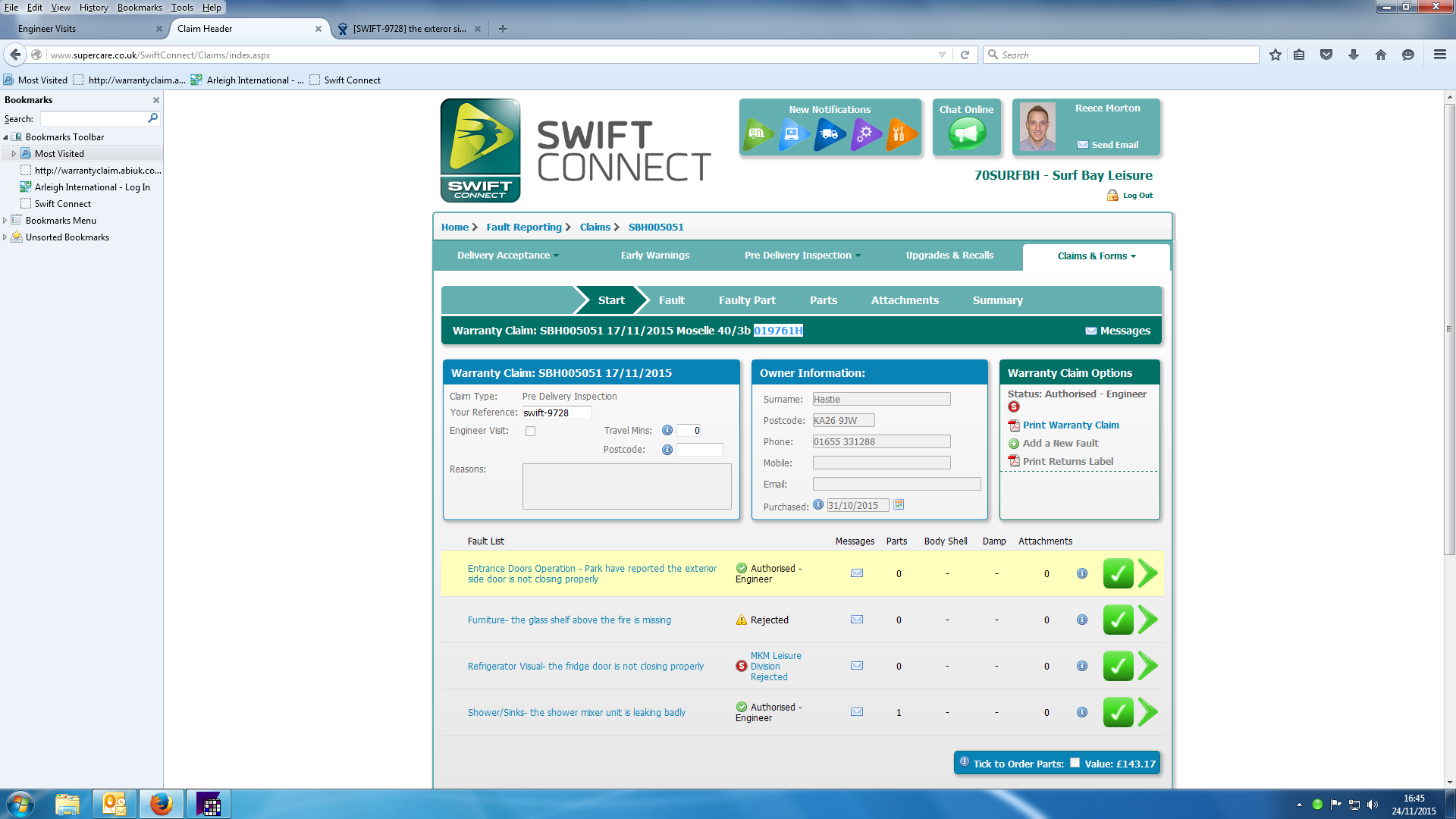 Debbie Bartlett (Inactive) added a comment - Swift have advised that they will be attending site W/C 26/09/16. Screen shot attached.