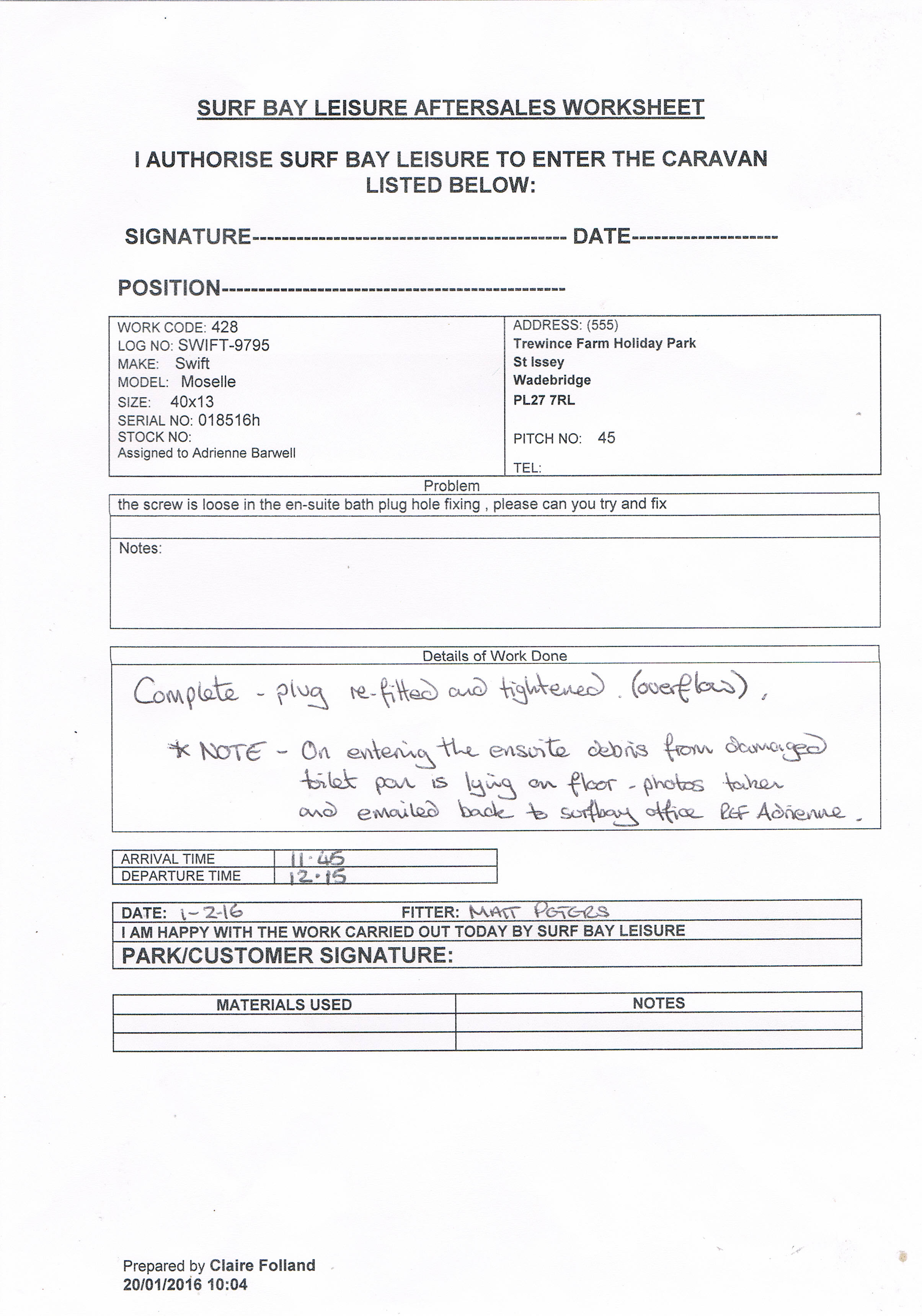 Complete | Adrienne Barwell (Inactive) |