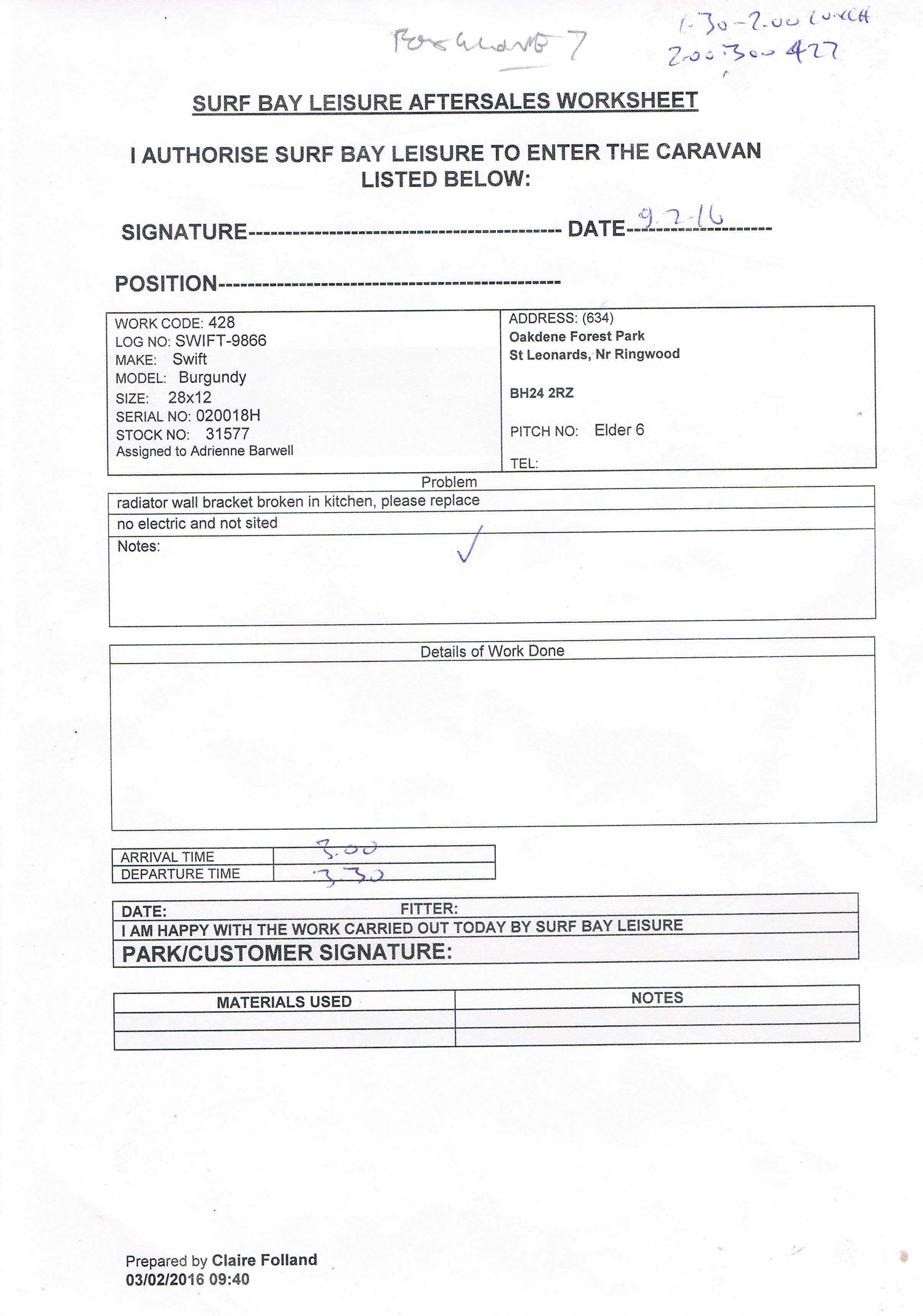Claire Folland added a comment - Recieved replacement radiator brackets, issued worksheet