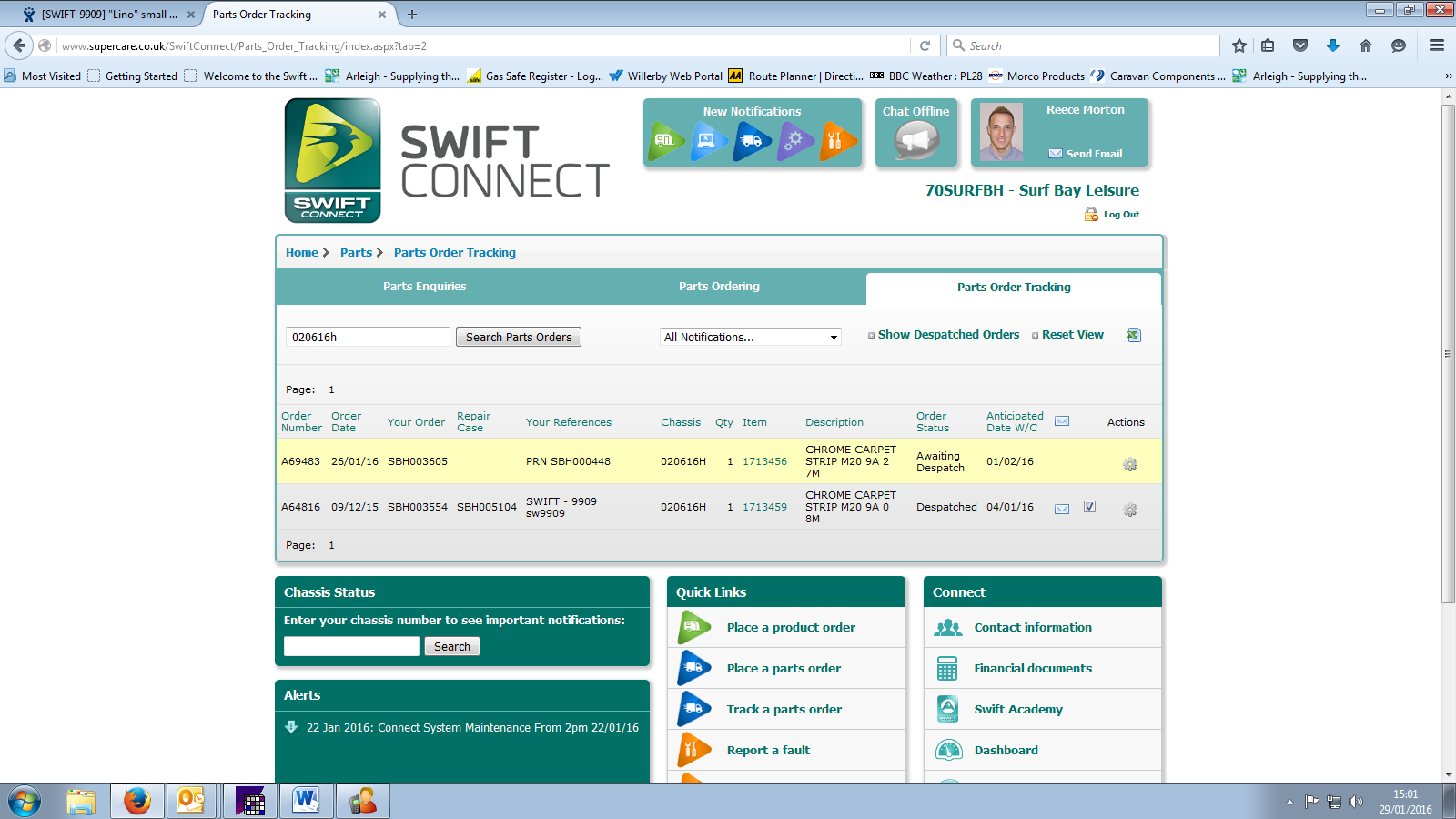 | Parts Expected | 01/Feb/16 | |