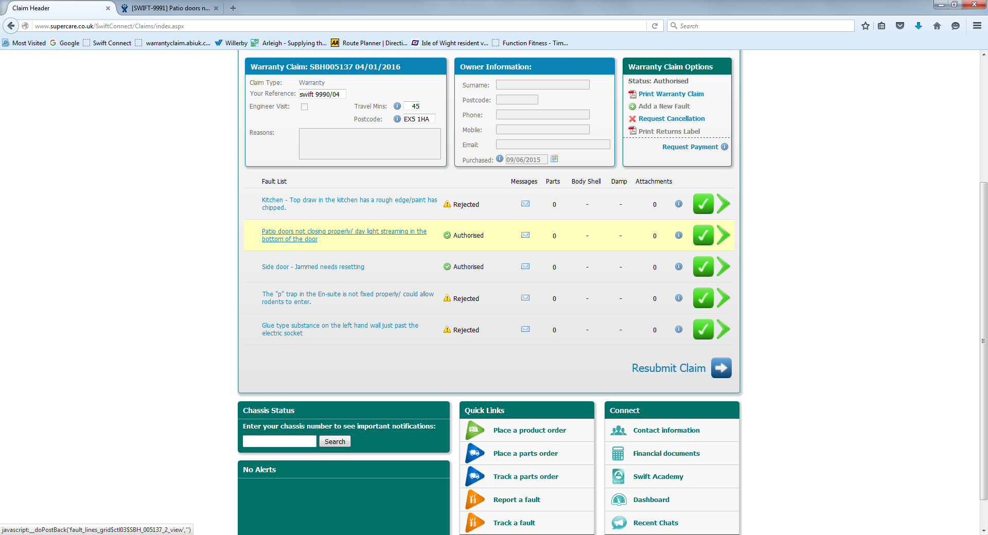 | Issue Type | Kitchen Cupboards (8 Weeks) [ 31 ] | Ext Doors & Windows (4 weeks) [ 4 ] |