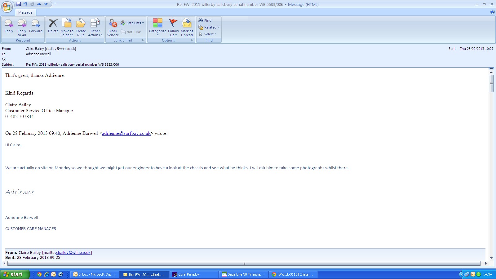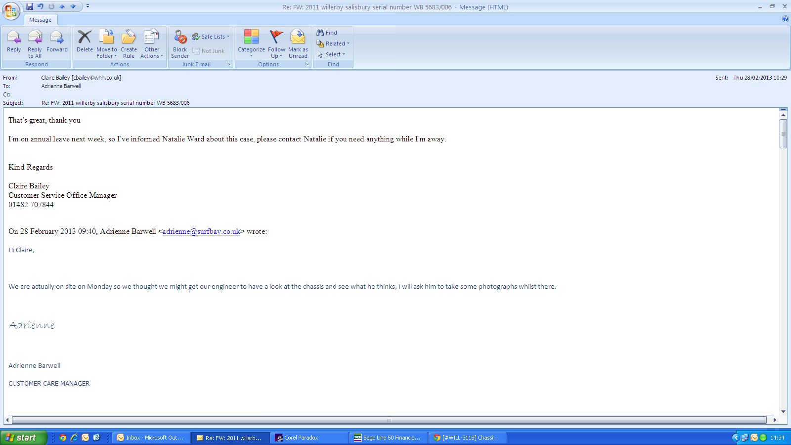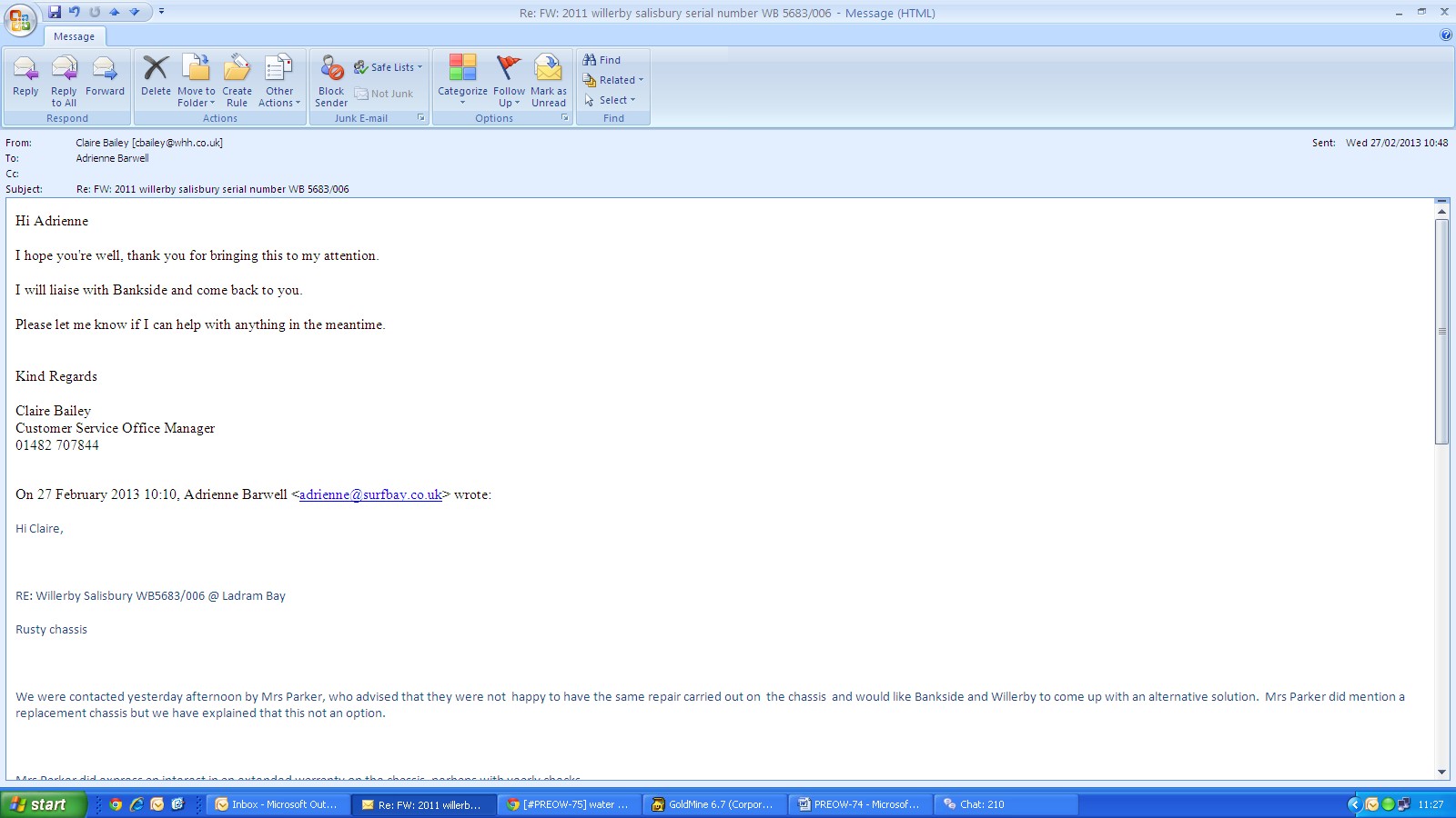 Mr Parker has had bankside paint the chassis twice, the chassis has now gone rusty again, he is very unhappy about having it painted again, advised i would have to submit this into willerby