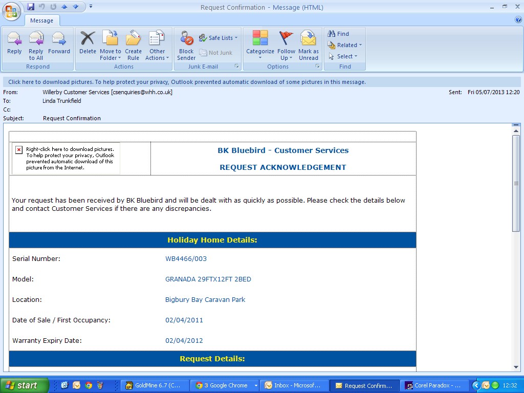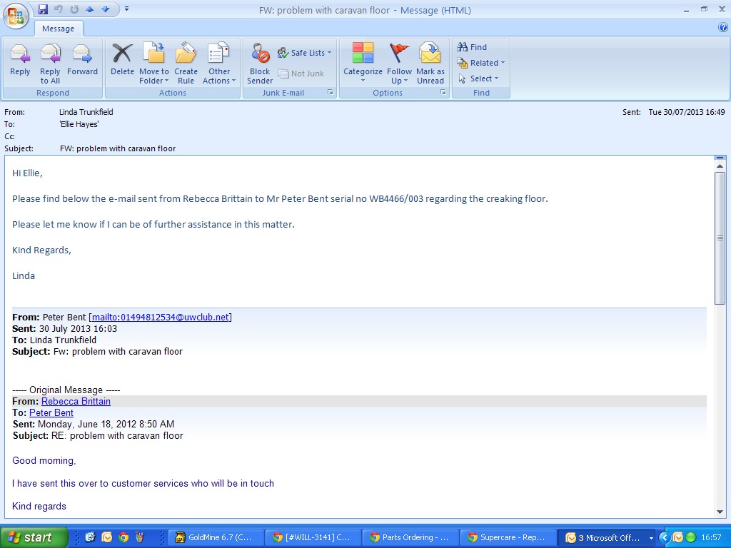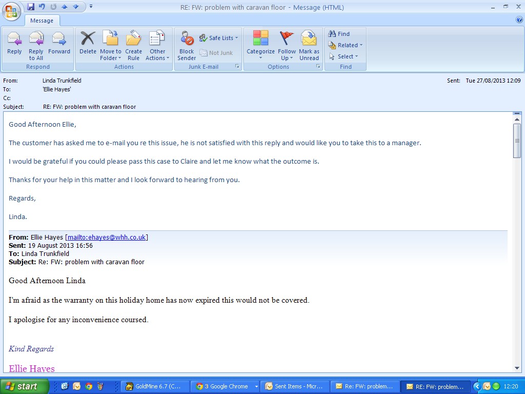 Linda Trunkfield (Inactive) added a comment - - edited I have had an e-mail from Ellie (attached) saying that as the warranty has expired they would not cover it - the van was out of warranty when he reported it direct to Willerby.