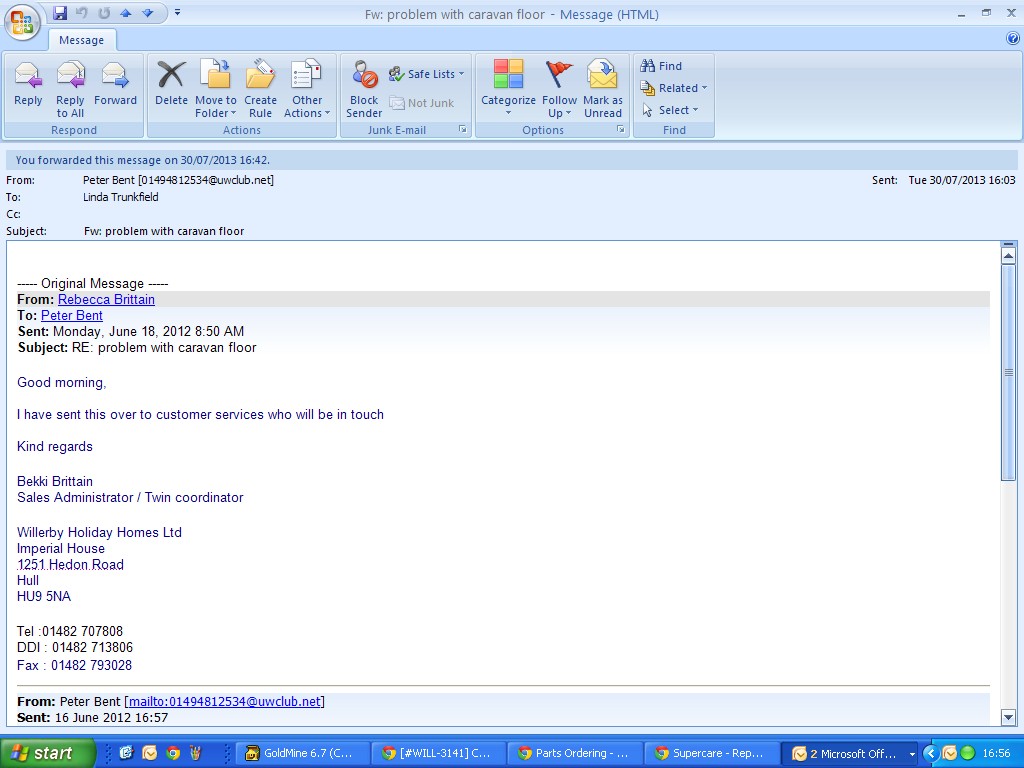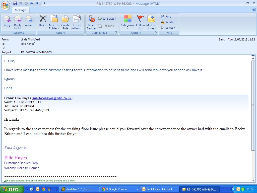 Linda Trunkfield (Inactive) added a comment - - edited Mr Bent has sent the a copy of the e-mail Rebecca Brittain sent to him and I have passed this on to Ellie as she requested. - All screenshots attached.