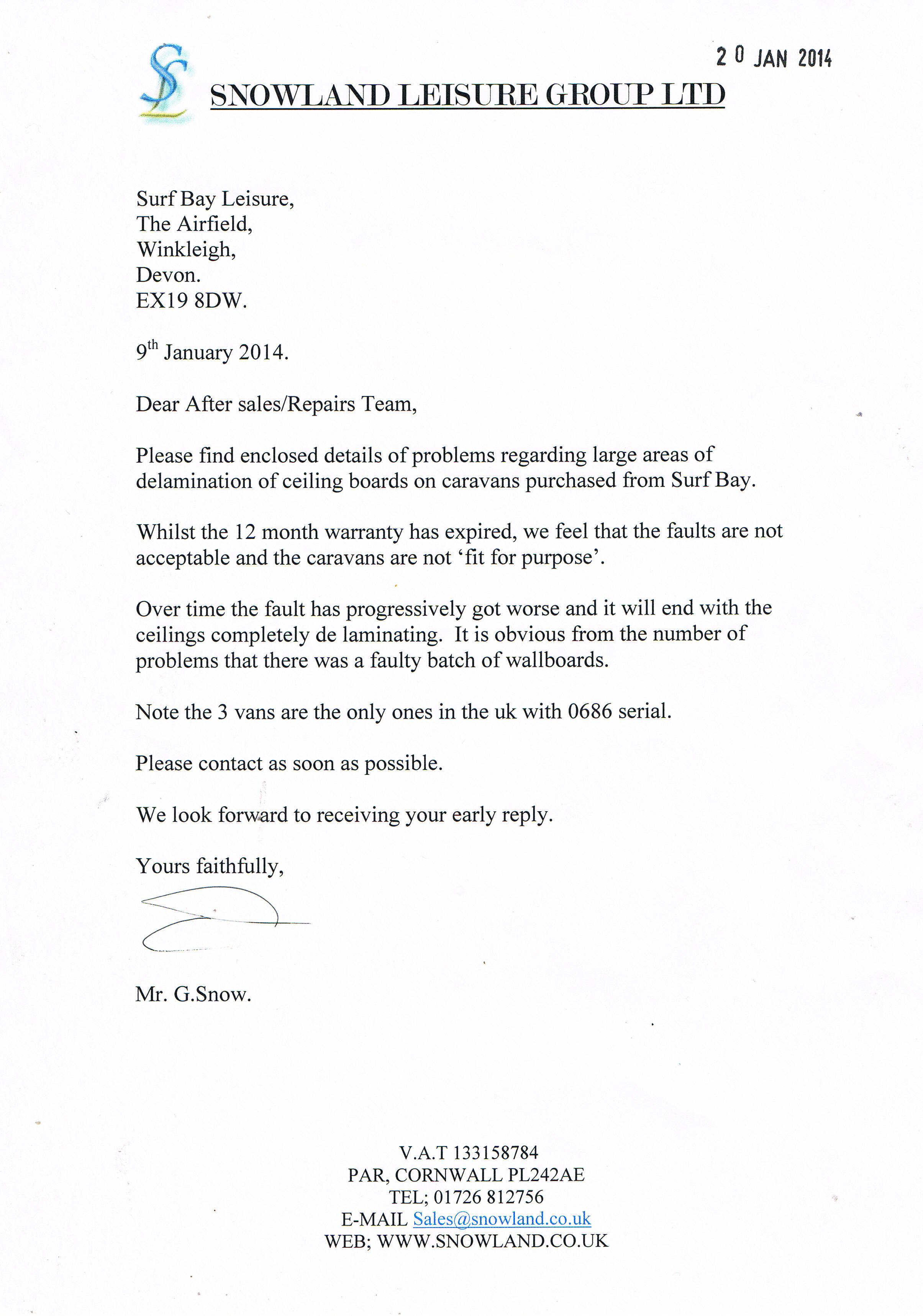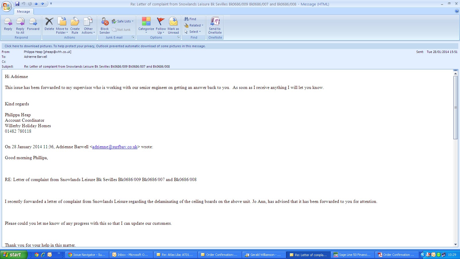 Adrienne Barwell (Inactive) added a comment - Willerby advise: Hi Adrienne Our senior engineer has investigated and checked the whole batch of vans and at no point has ceiling boards been reported as an issue. Therefore Willerby will not be proceeding any further on this matter as the vans are out of warranty. Kind regards Philippa Heap Account Coordinator Willerby Holiday Homes 01482 780118