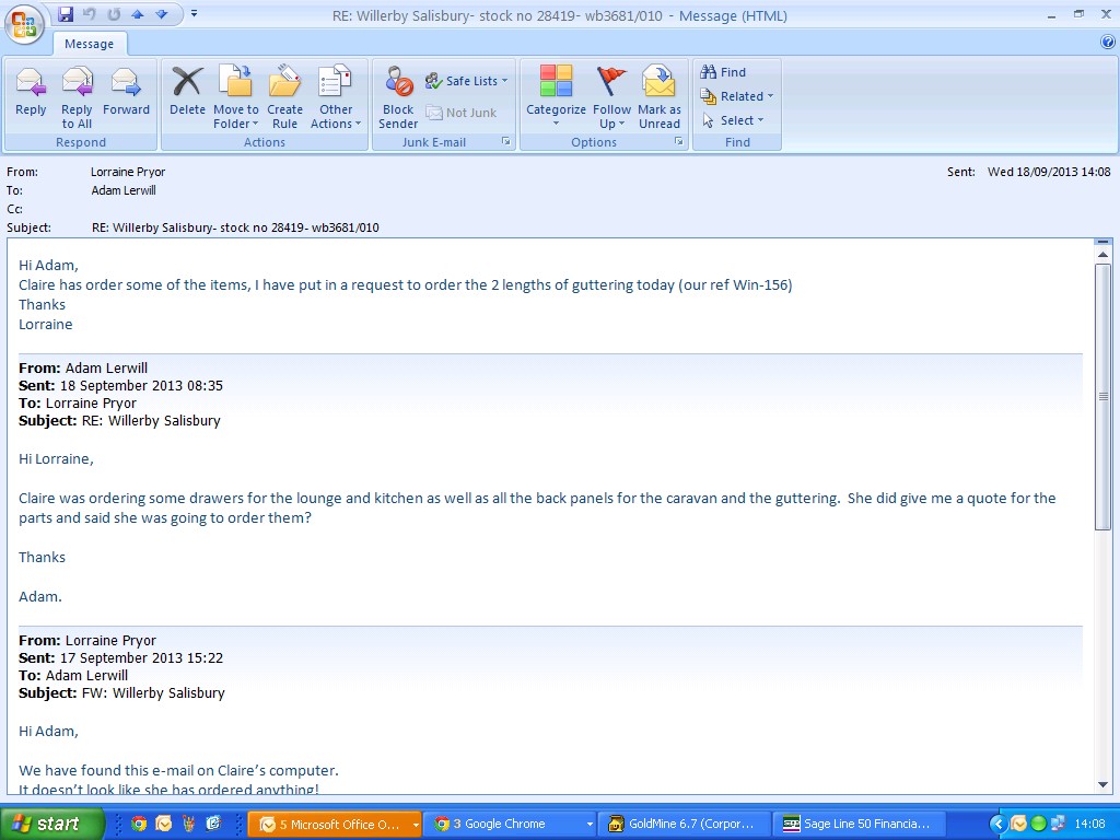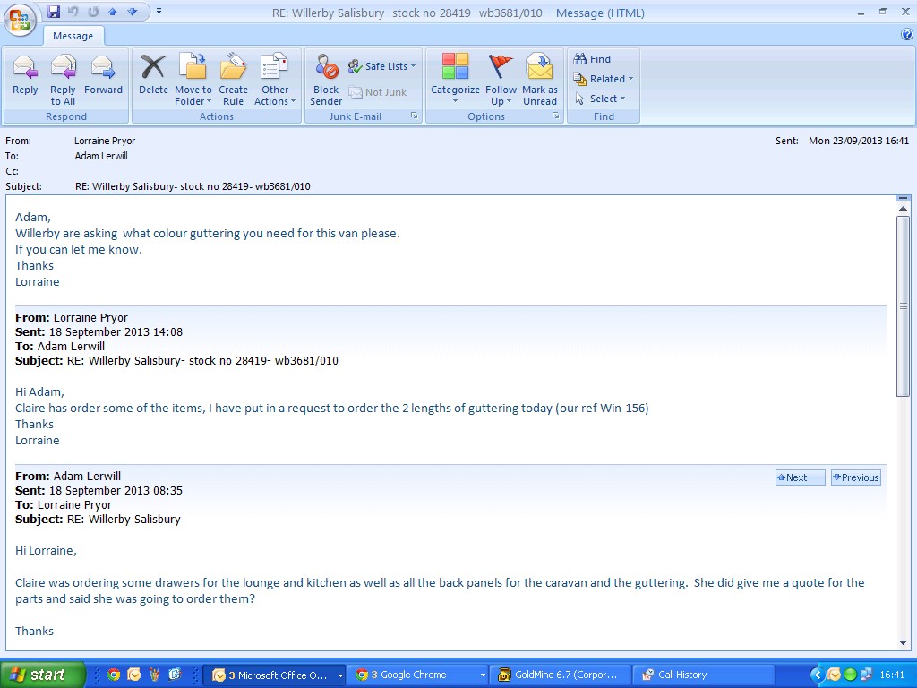 So all I can do is place an order on Willerby asking for the guttering, AS8289/5035