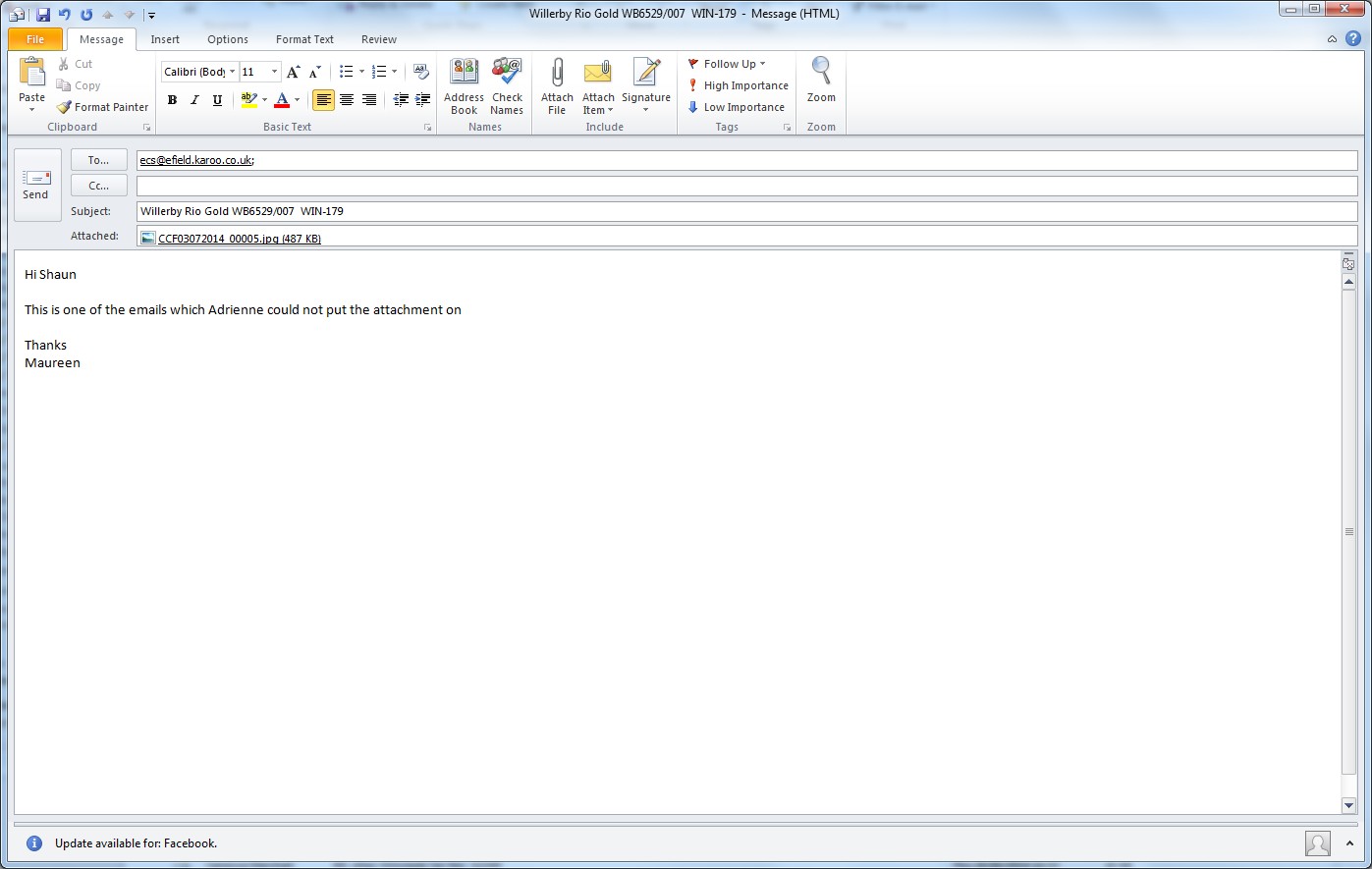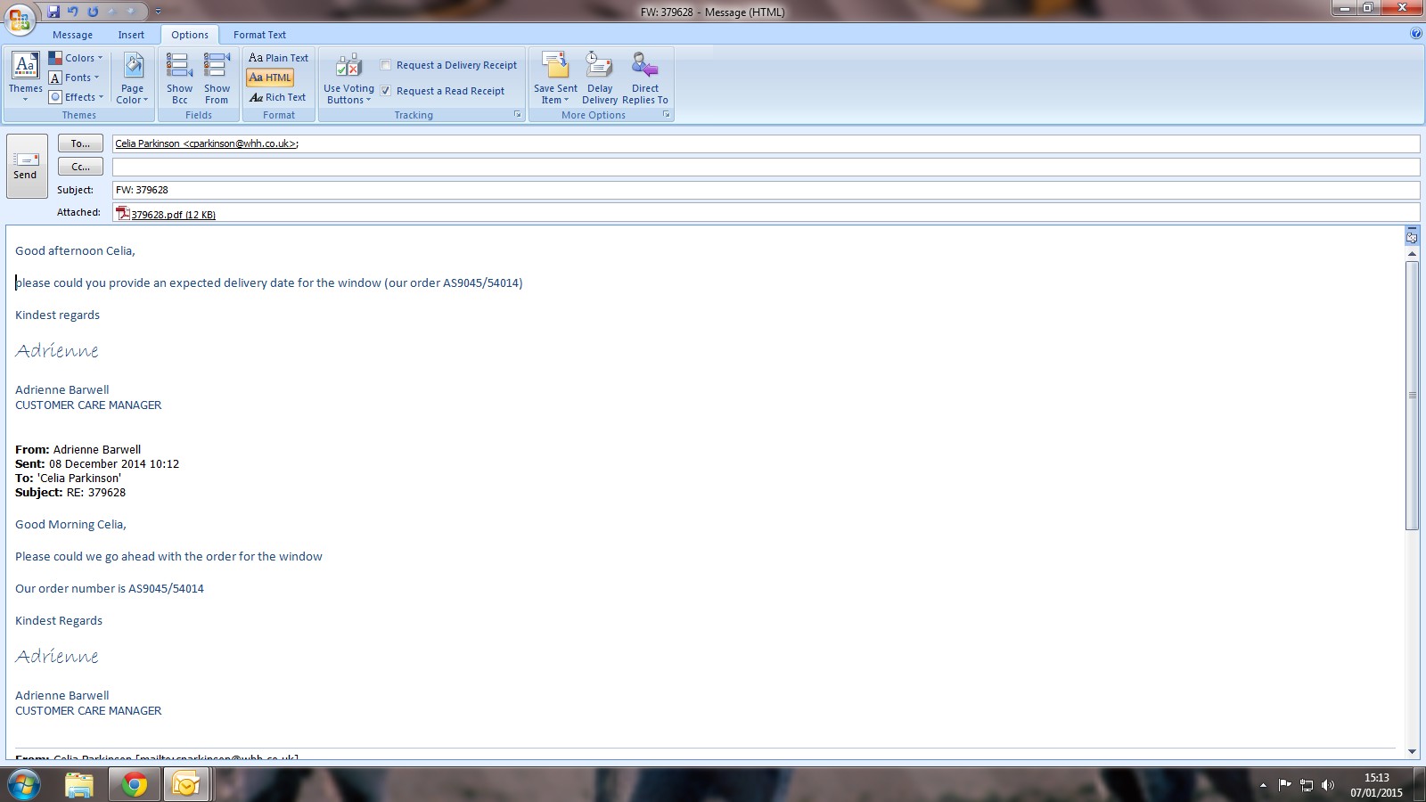 Adrienne Barwell (Inactive) added a comment - Celia advises that the window has been dispatched and should be with us by Friday at the latest