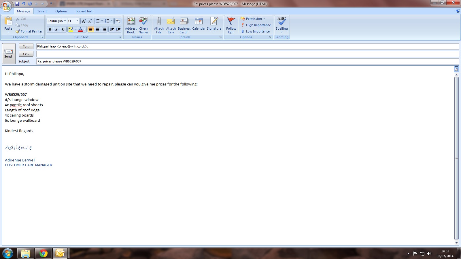 Adrienne Barwell (Inactive) added a comment - quote received - I will order the window