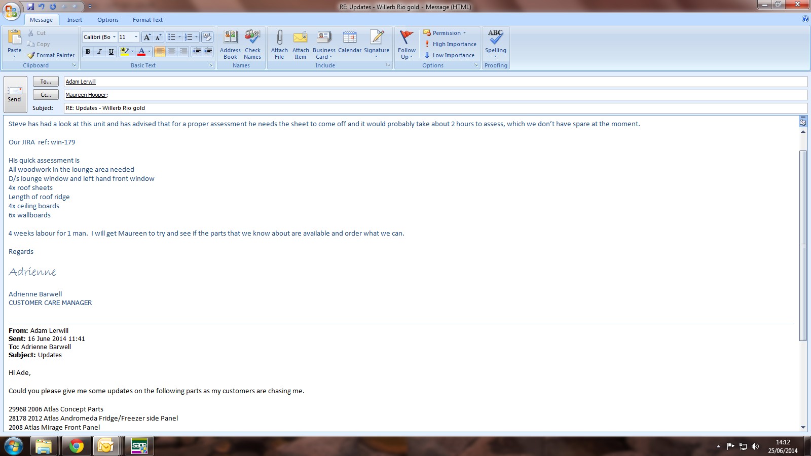 Adrienne Barwell (Inactive) added a comment - I have asked Mo to confirm that she has ordered the wallboards and ceiling boards. I have chased Willerby to find out when we can expect the window