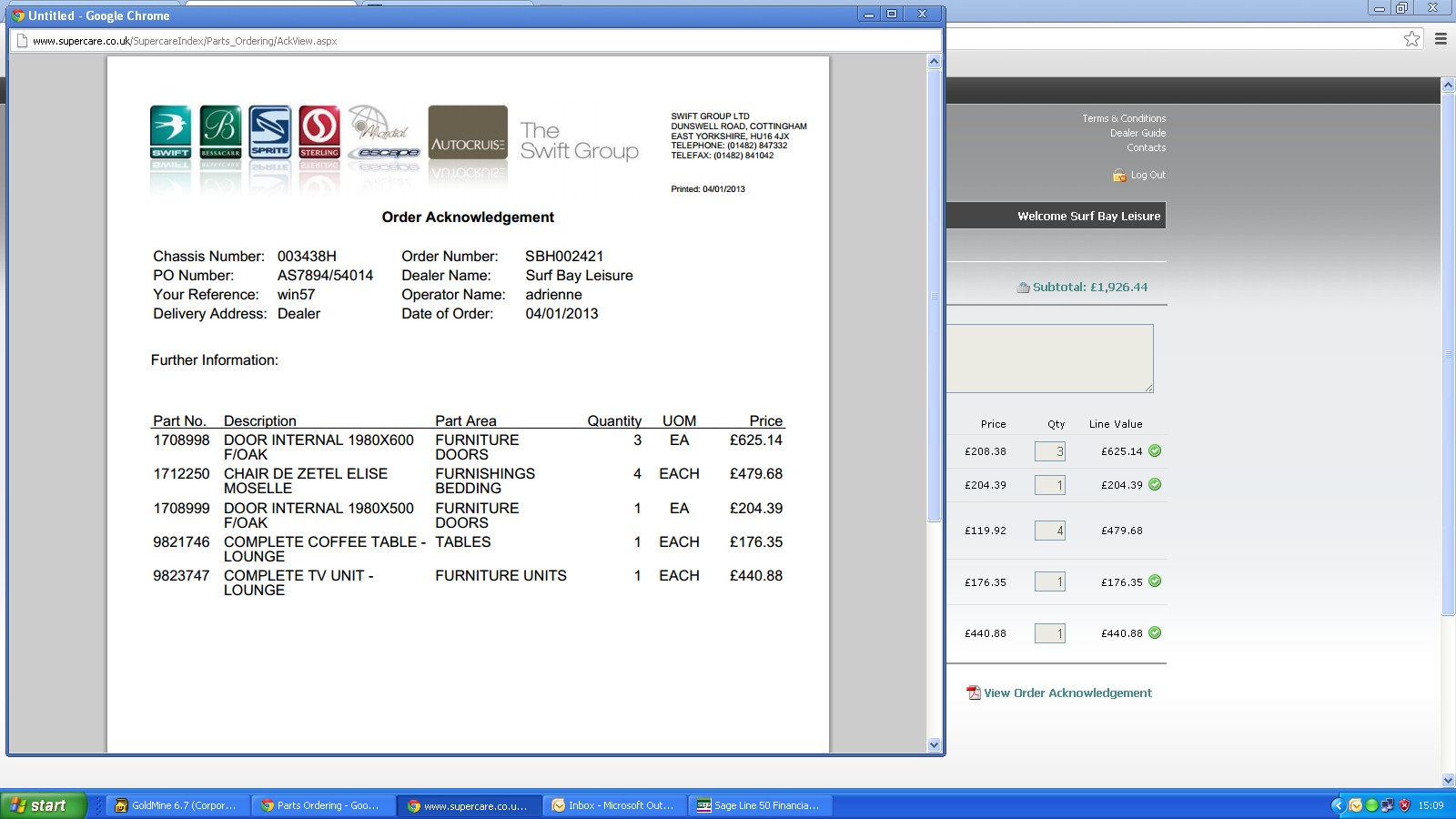 parts ordered